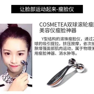 Y型结构的滚珠瘦脸仪,通过2个滚球的吸引提拉,挤压按摩,依次接触肌肤增强面部肌肉运动,属于物理无副作用瘦脸神器、消水肿等。