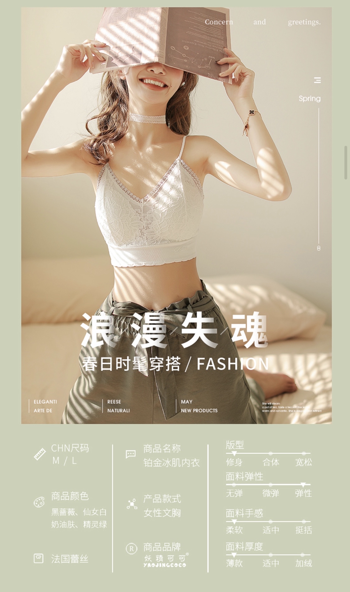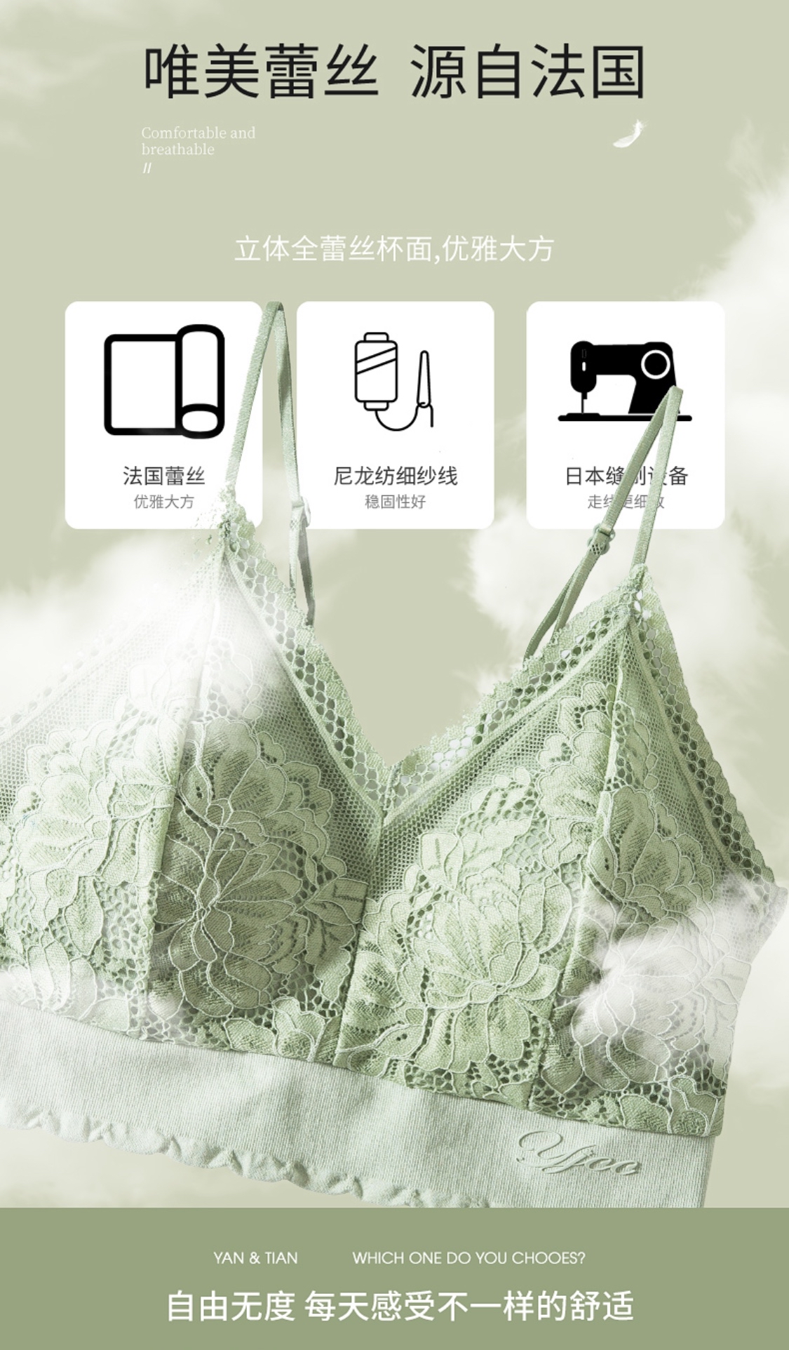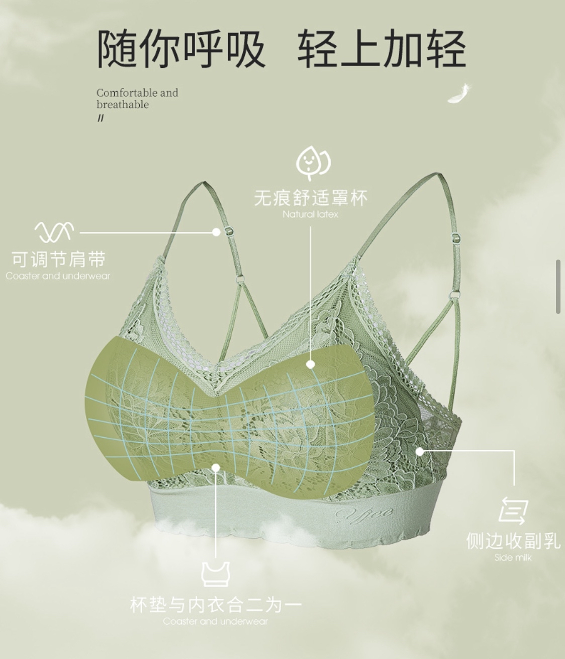 🔴预定特价: 妖精可可官方正品乳胶文胸性感蕾丝无钢圈睡眠内衣薄款收副乳