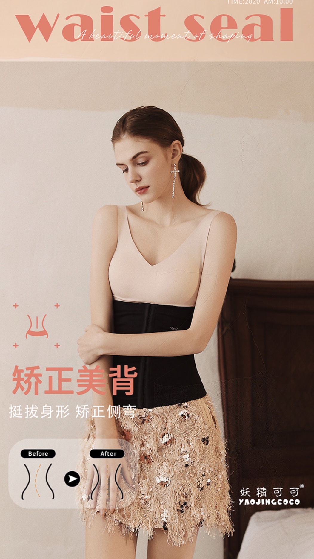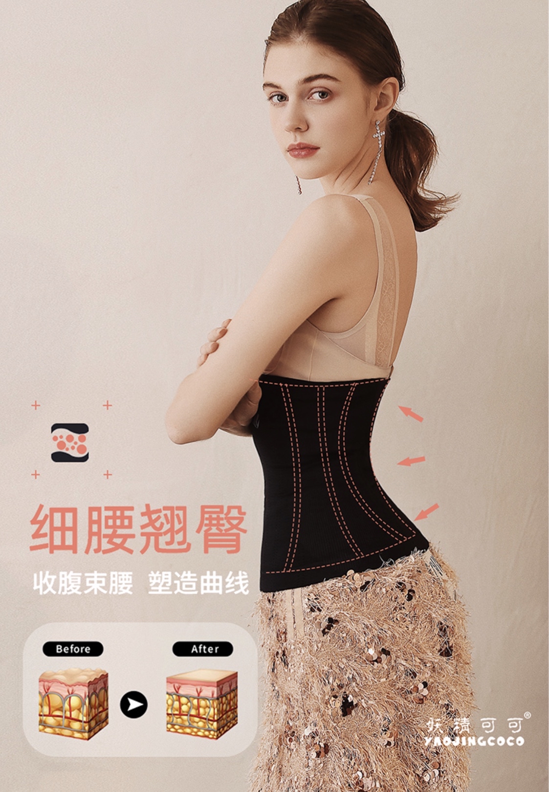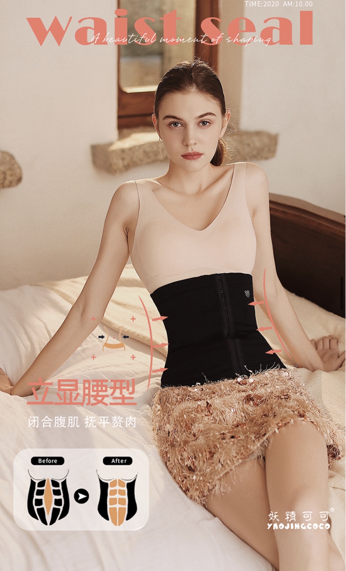 🛒现货特价: 妖精可可官方正品塑身腰封闪电瘦腰运动束腰收腹带燃脂瘦肚