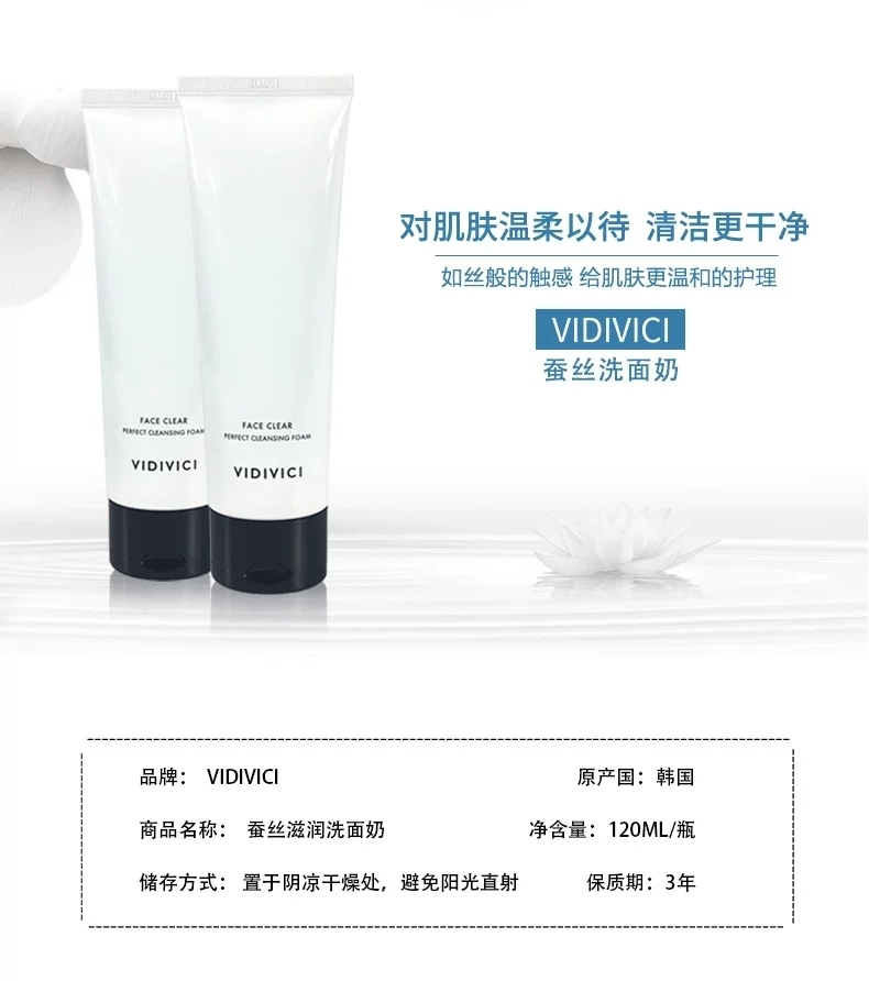 号称韩国小香奈儿的洗面奶,孕妇可用、敏感肌肤适合,VIDIVICI女神蚕丝泡沫洁面乳洗面奶,温和保湿,泡沫极其丰富,洗完不会假滑,不拔干!