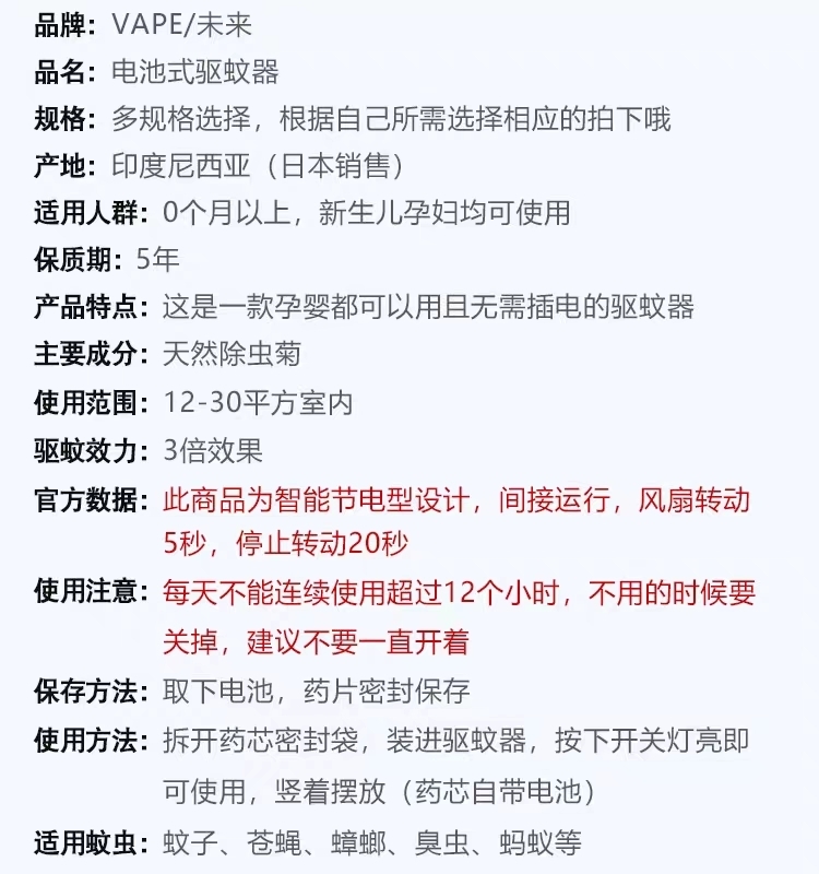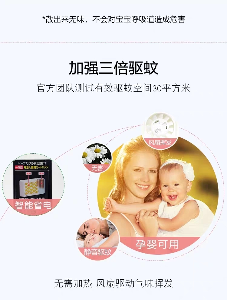 无毒,无味,静音,便携式,驱蚊器纯天然,一天8小时左右可连续用150日。孕妇新生儿放心使用!不仅可以在卧室使用,还可以随身携带,自配电池无需插电。