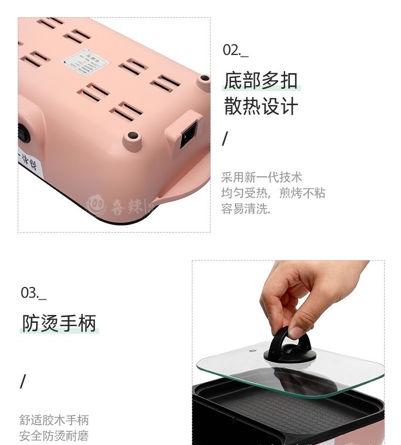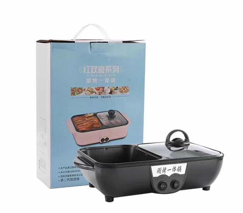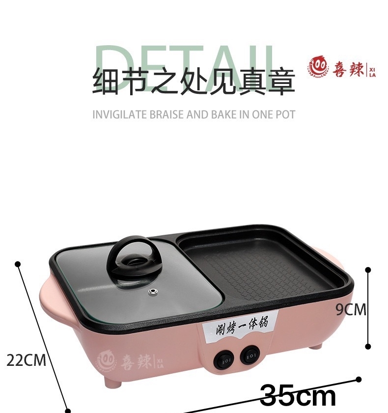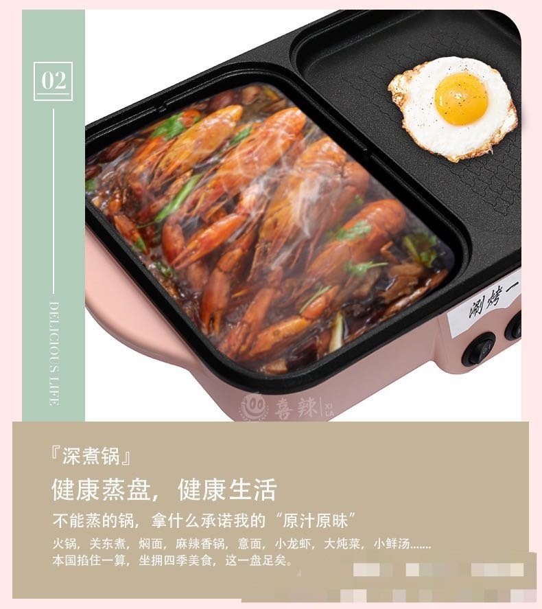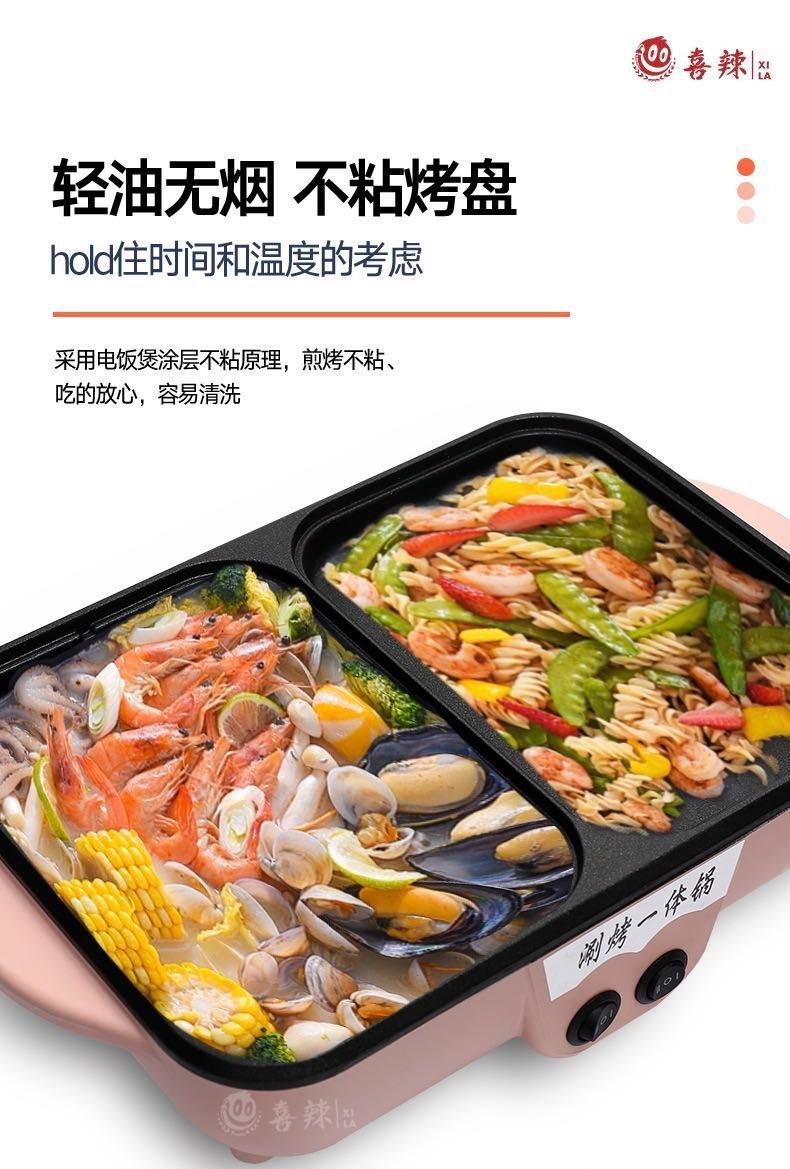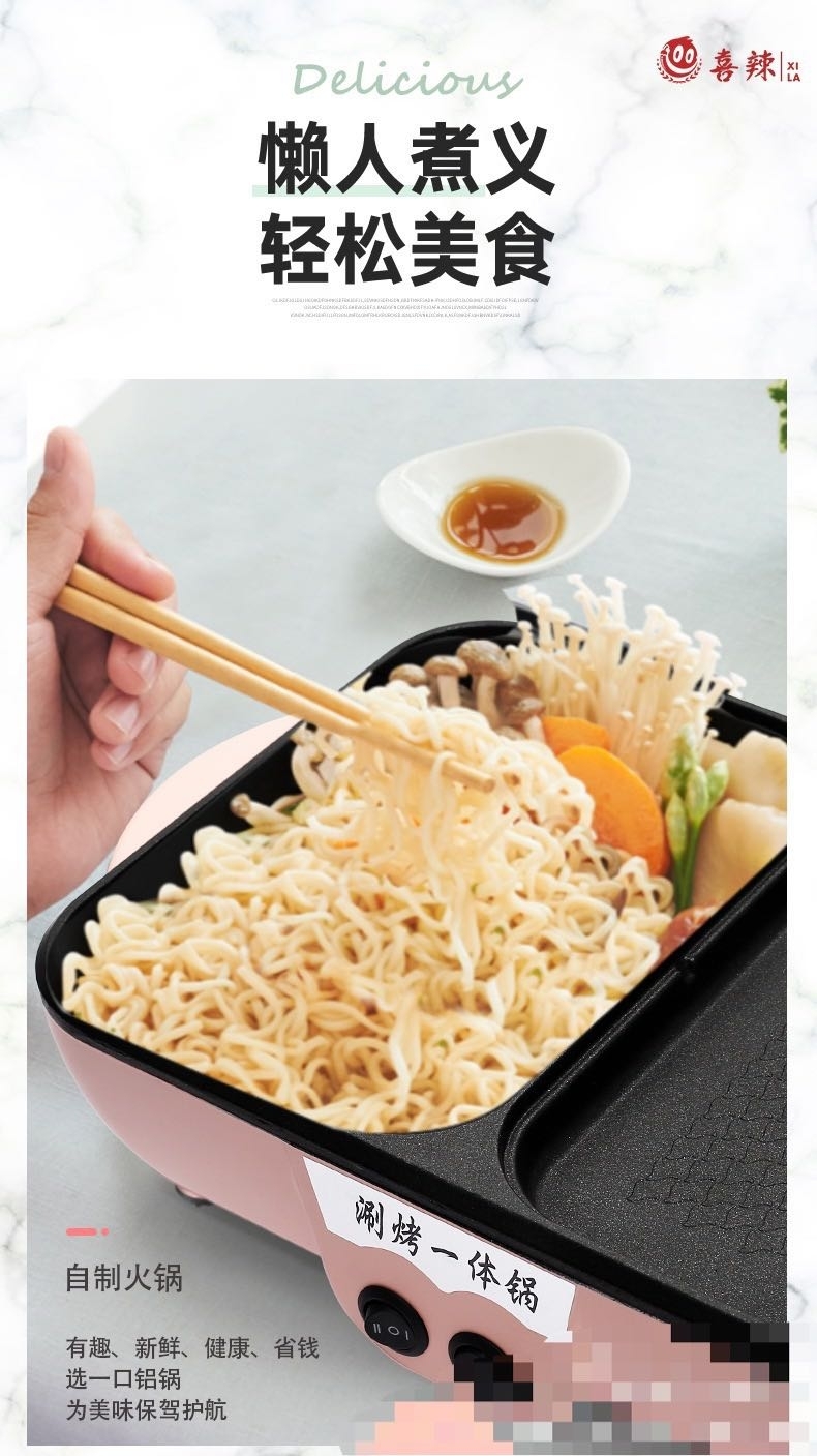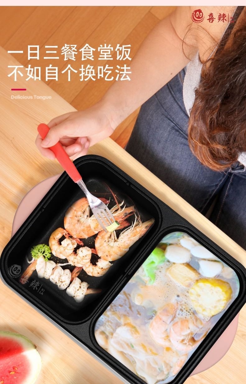 🟢现货特价: 网红韩式 烤涮一体锅 欧规多功能电热锅 电烤盘 韩国小粉锅
