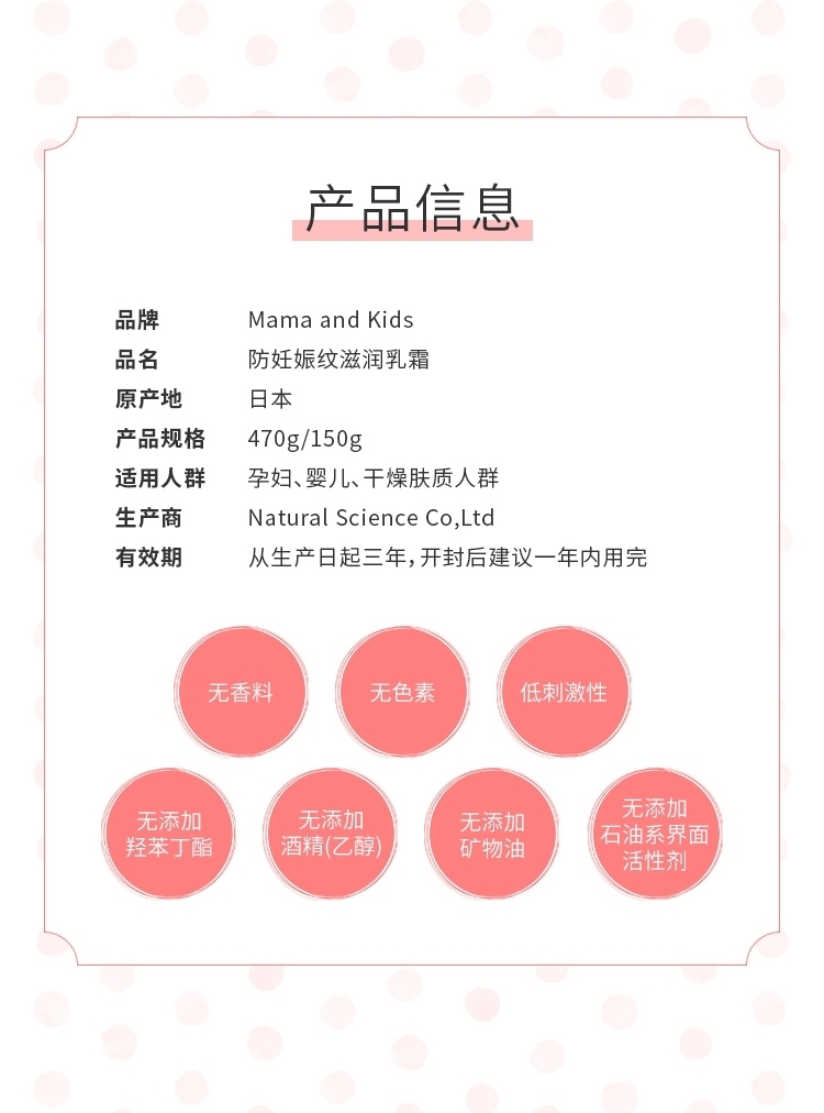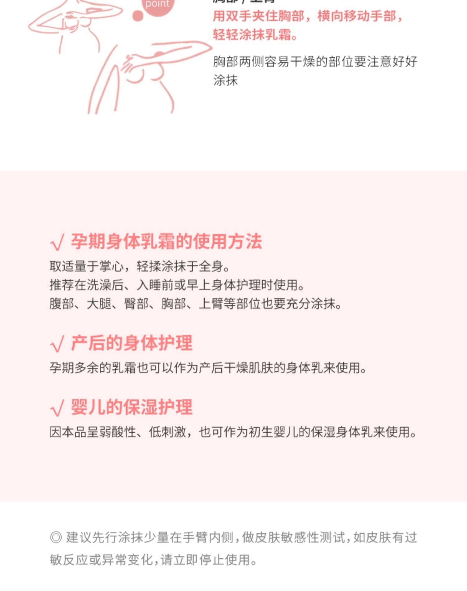 日本mamakids妊娠霜,这是一款涂抹简单的身体霜。选用积雪草弹性成分,12小时长效保湿。
