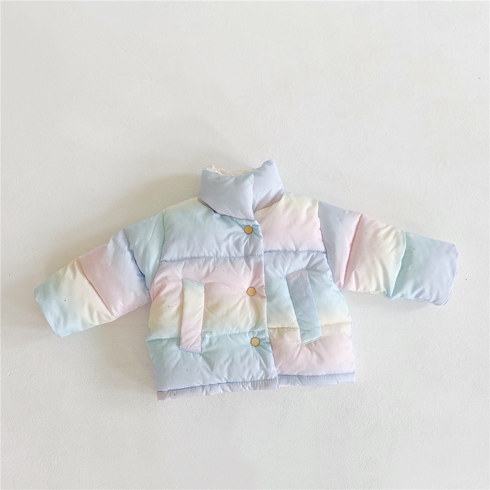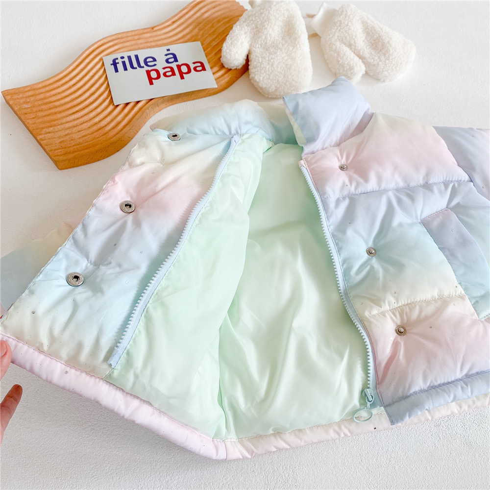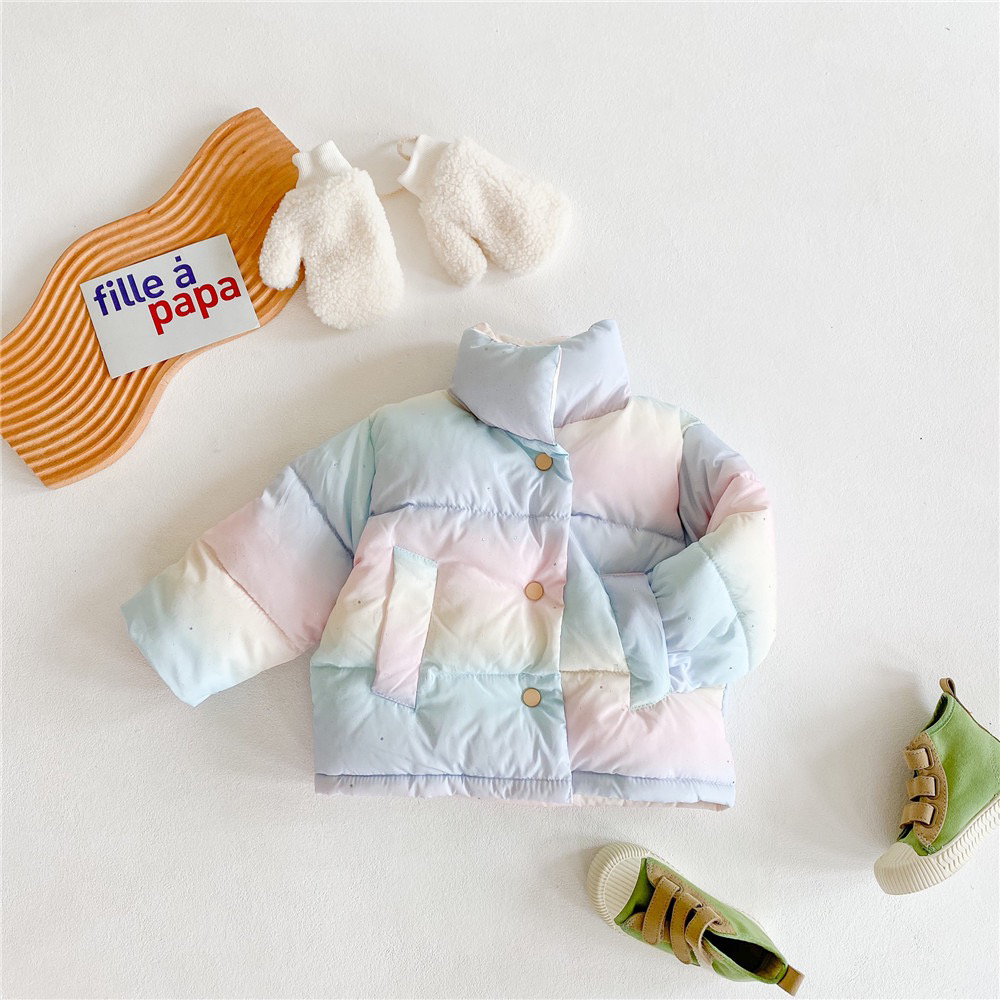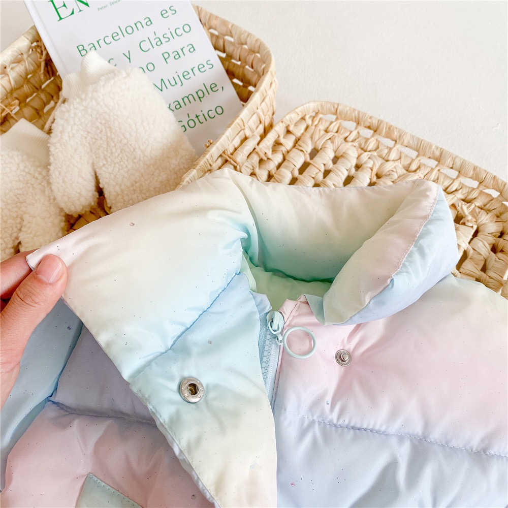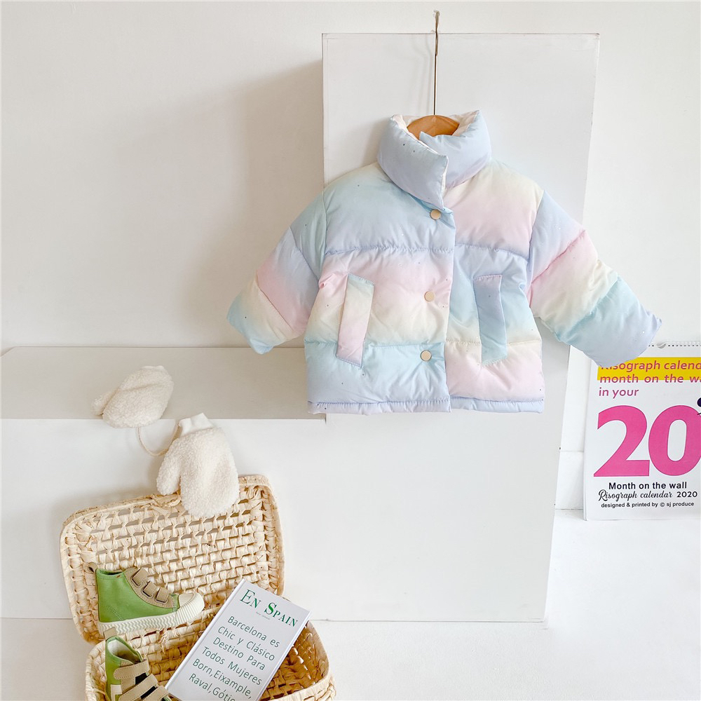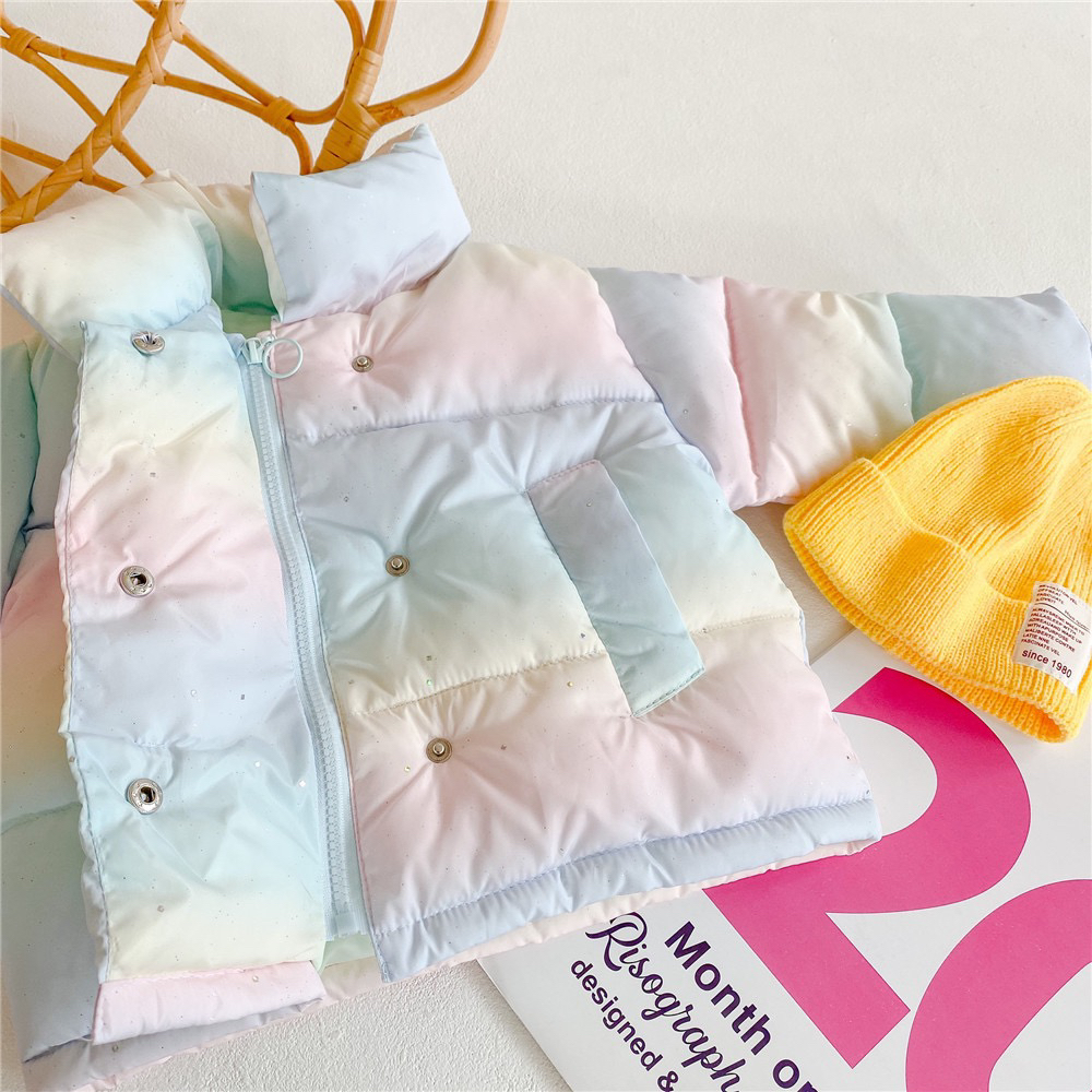 1)预定特价:儿童彩虹棉袄韩2020冬款男女童棉衣渐变色闪光棉服