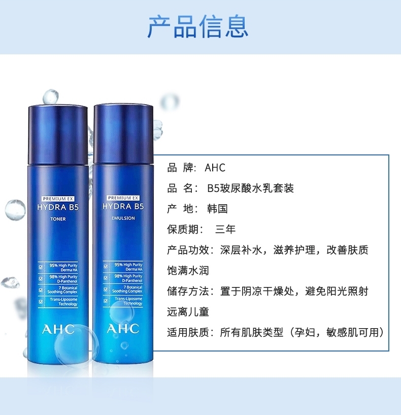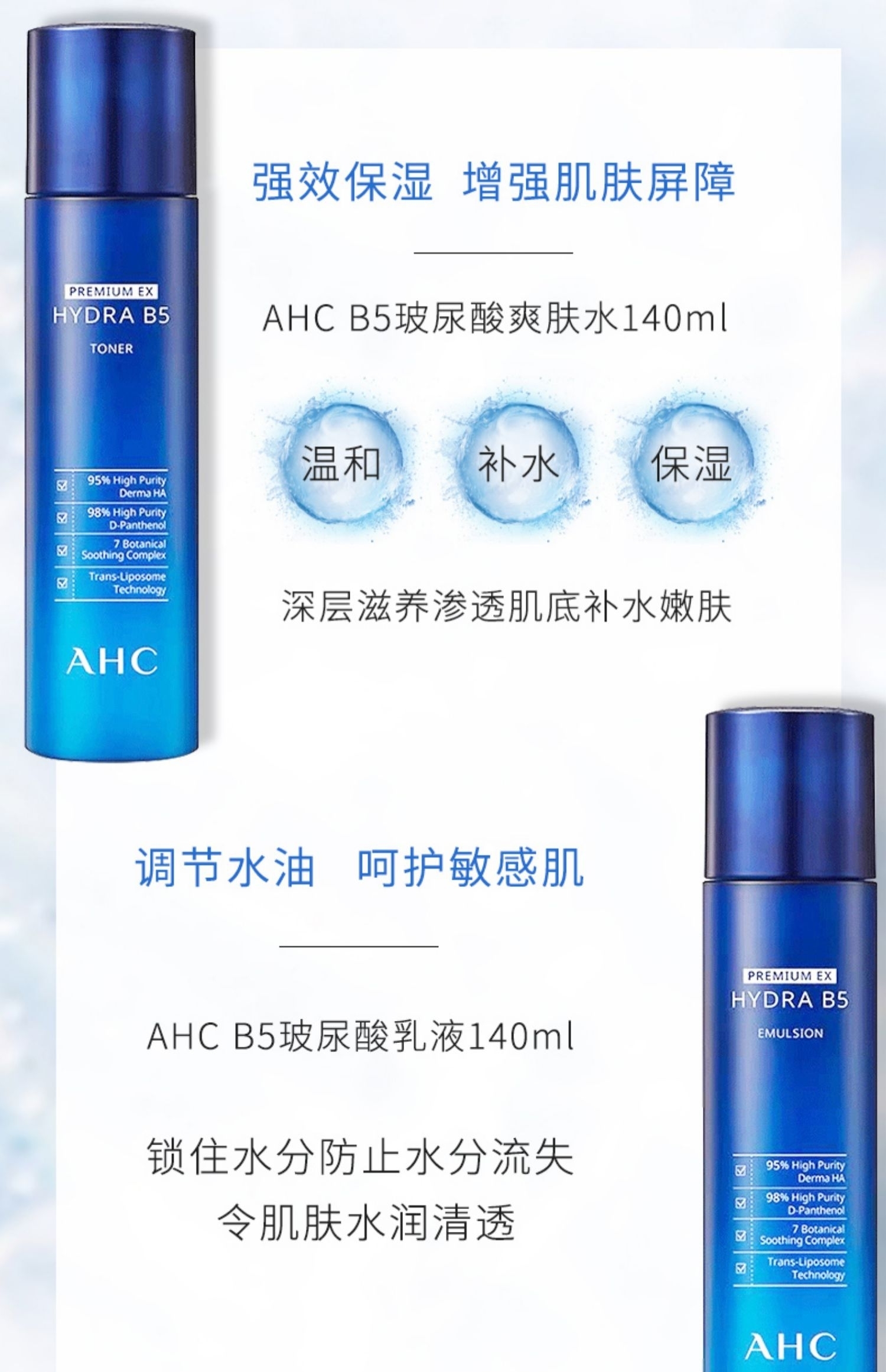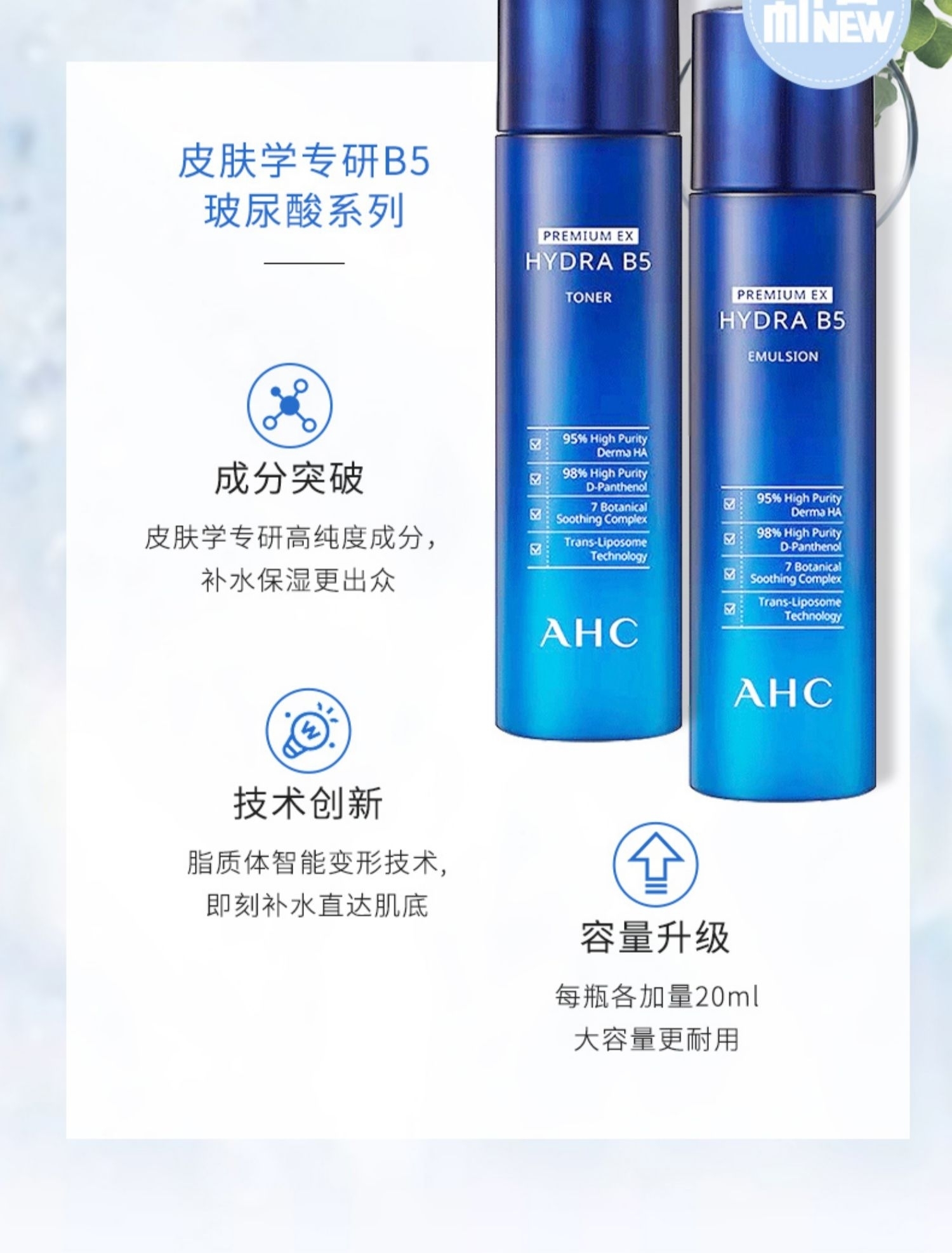 AHC B5玻尿酸水乳,水120ml 乳120ml。