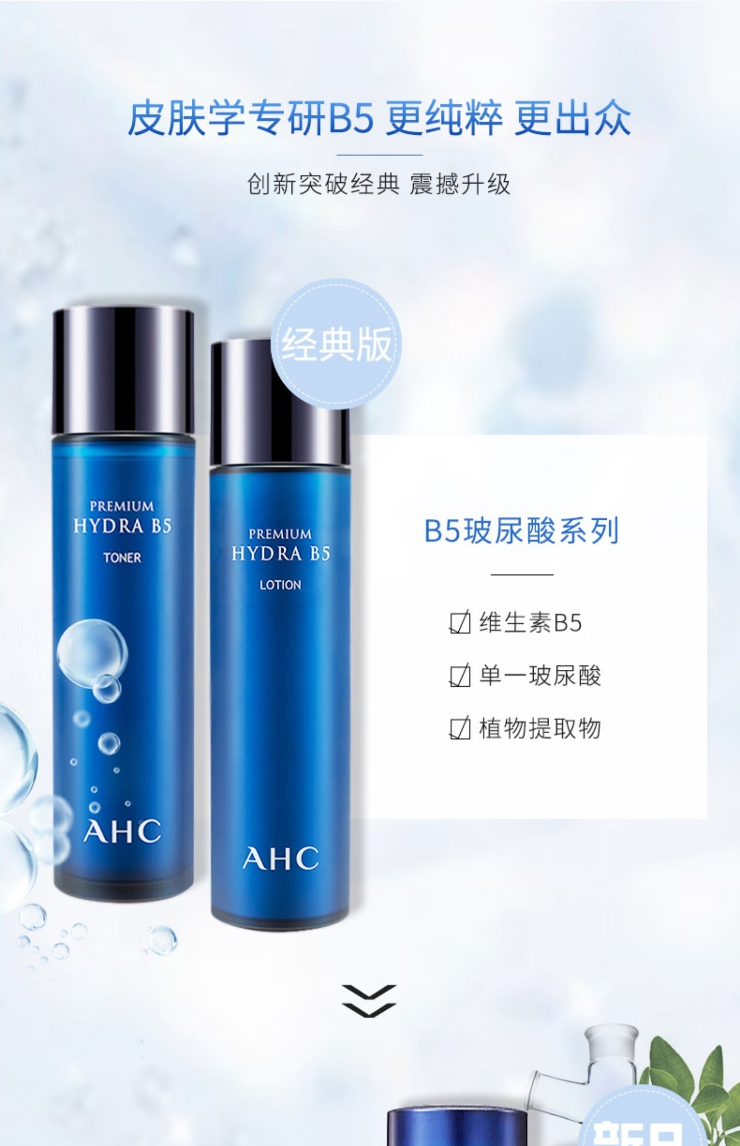 AHC B5玻尿酸水乳,水120ml 乳120ml。