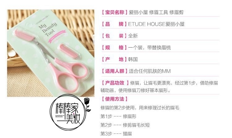 眉梳和修眉剪融合一体,使眉毛修剪的均匀漂亮 配合眉梳的修眉剪哦~