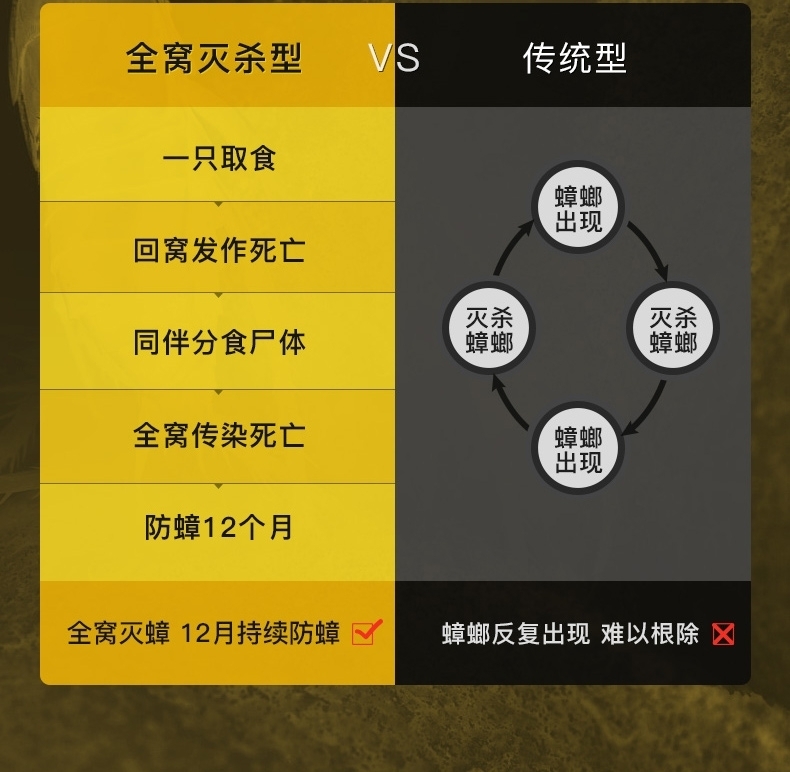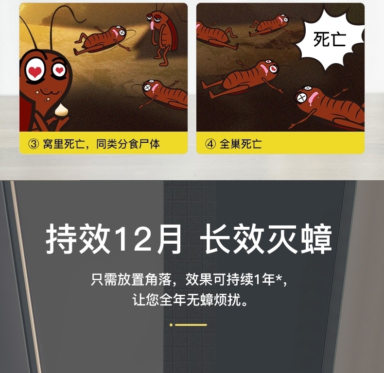 无毒蟑螂丸, 甚称灭蟑螂神器,简单又有效果。放置当天就开始起作用,蟑螂沾到药以后,药效发挥作用以后,蟑螂就死翘翘了,大个的也不例外,蟑螂会死在自己的巢里,其他蟑螂靠近的话沾到了药也会死,可以说是连根拔掉。