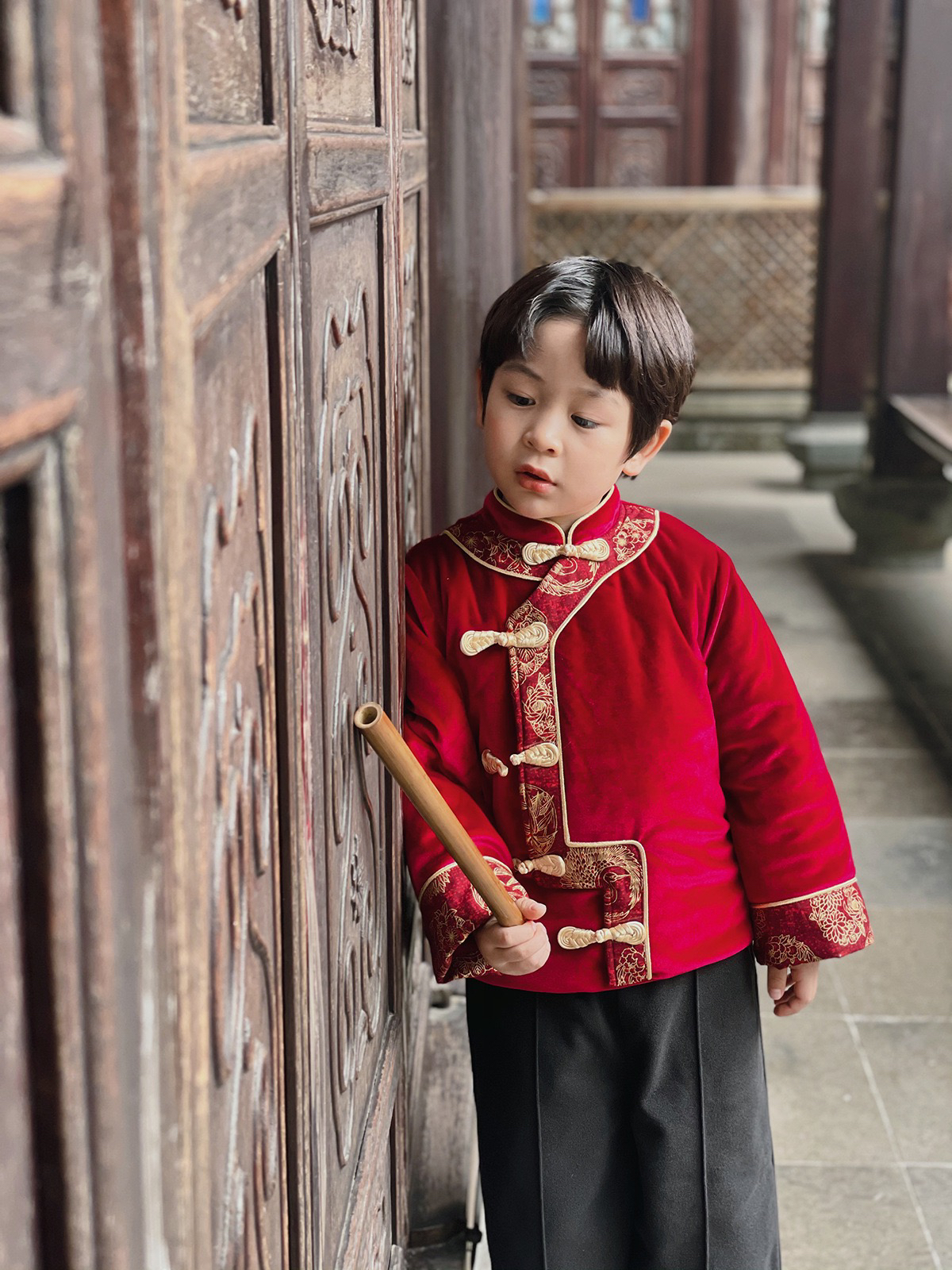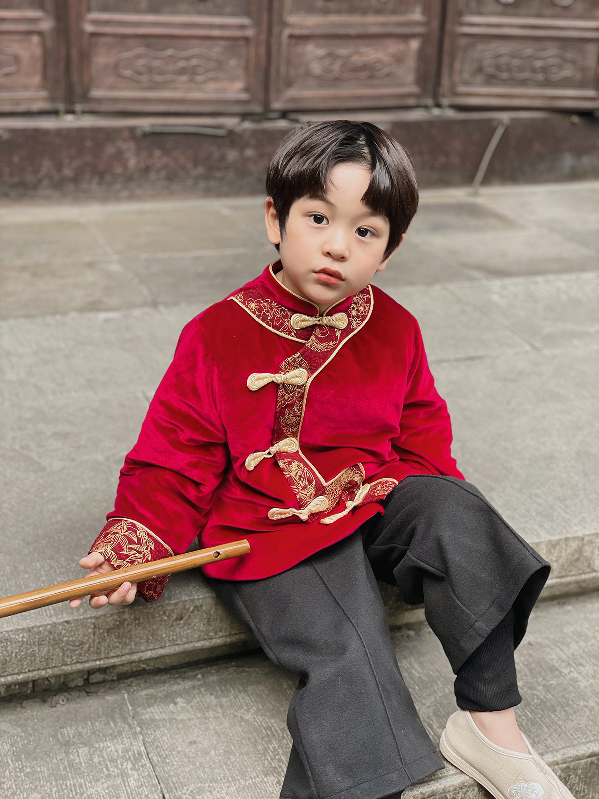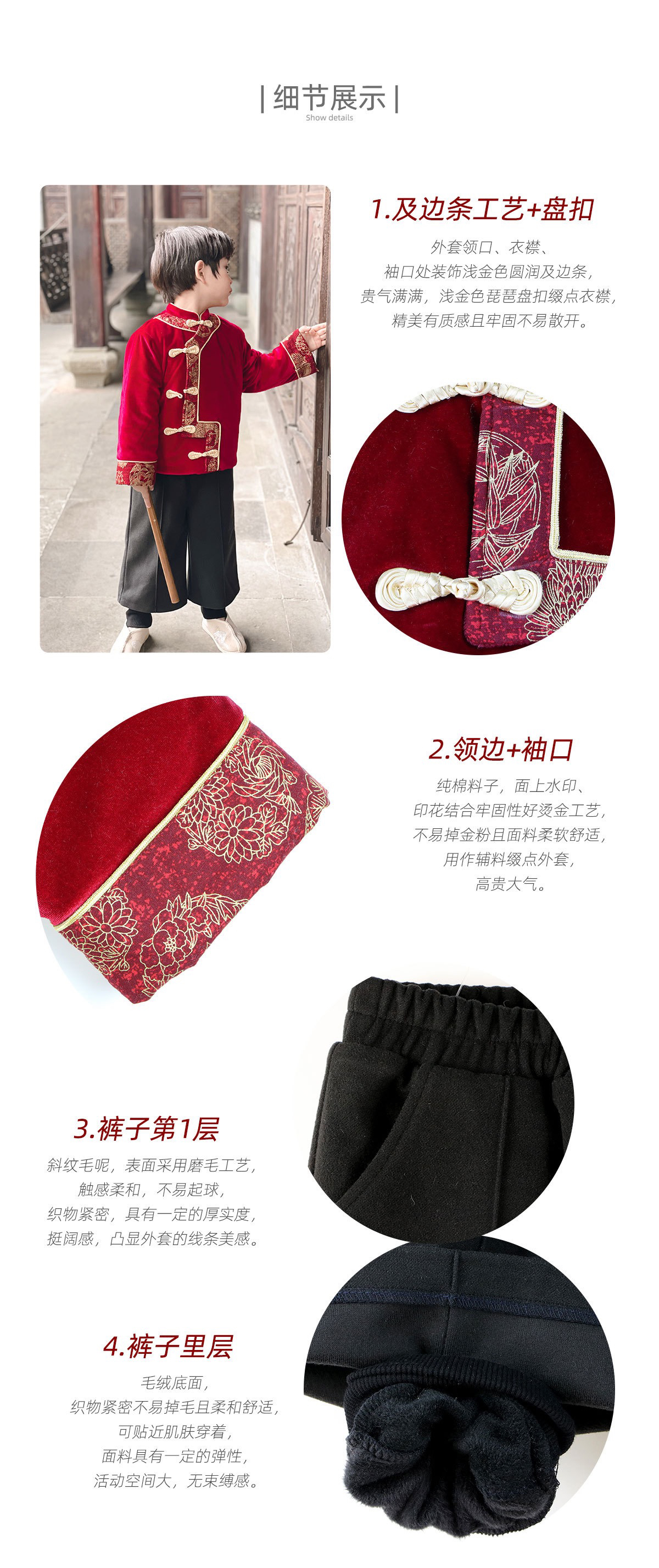 12)预定特价:年服唐装 儿童新款周岁服男童中国风古装秋冬加厚民族风宝宝套装