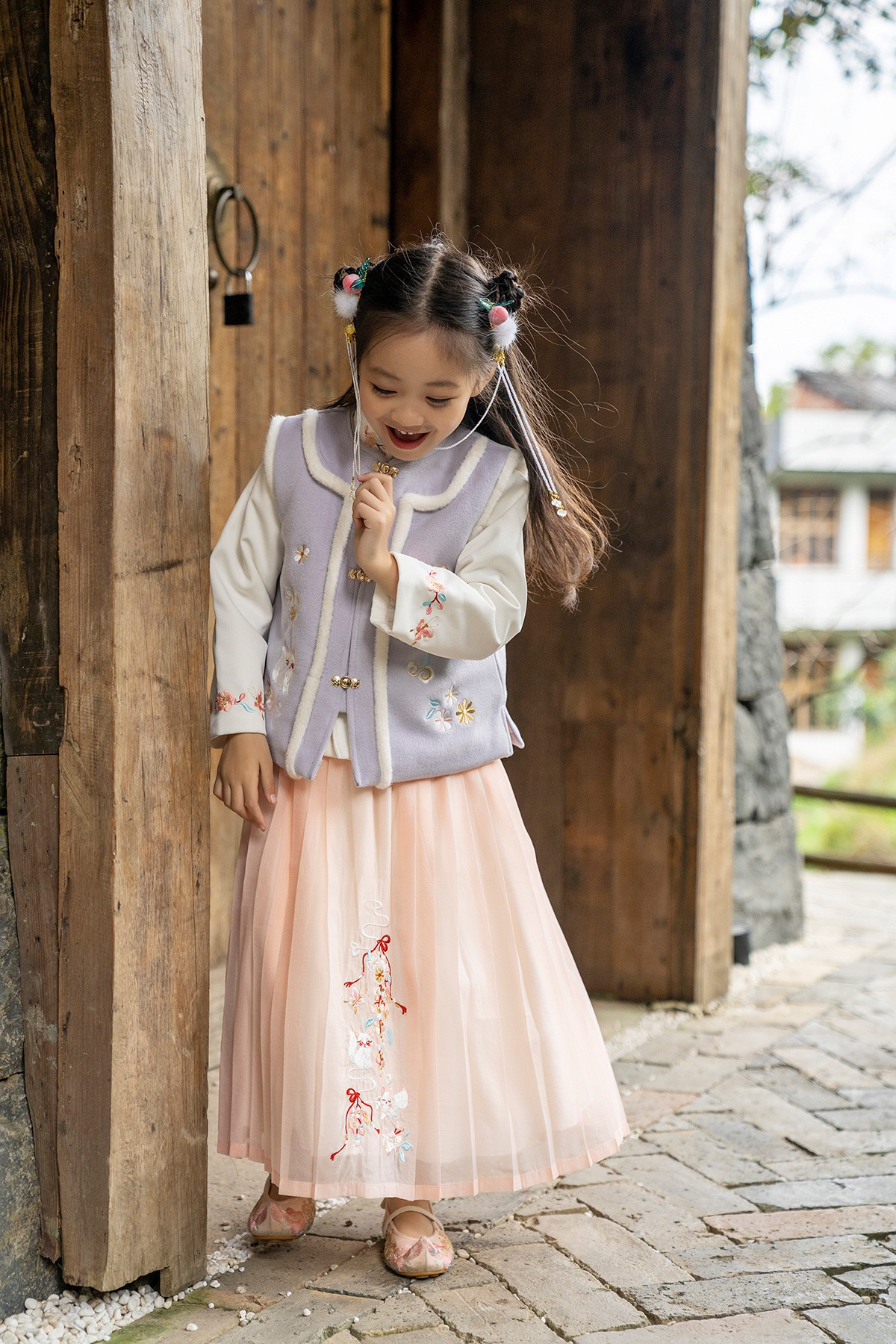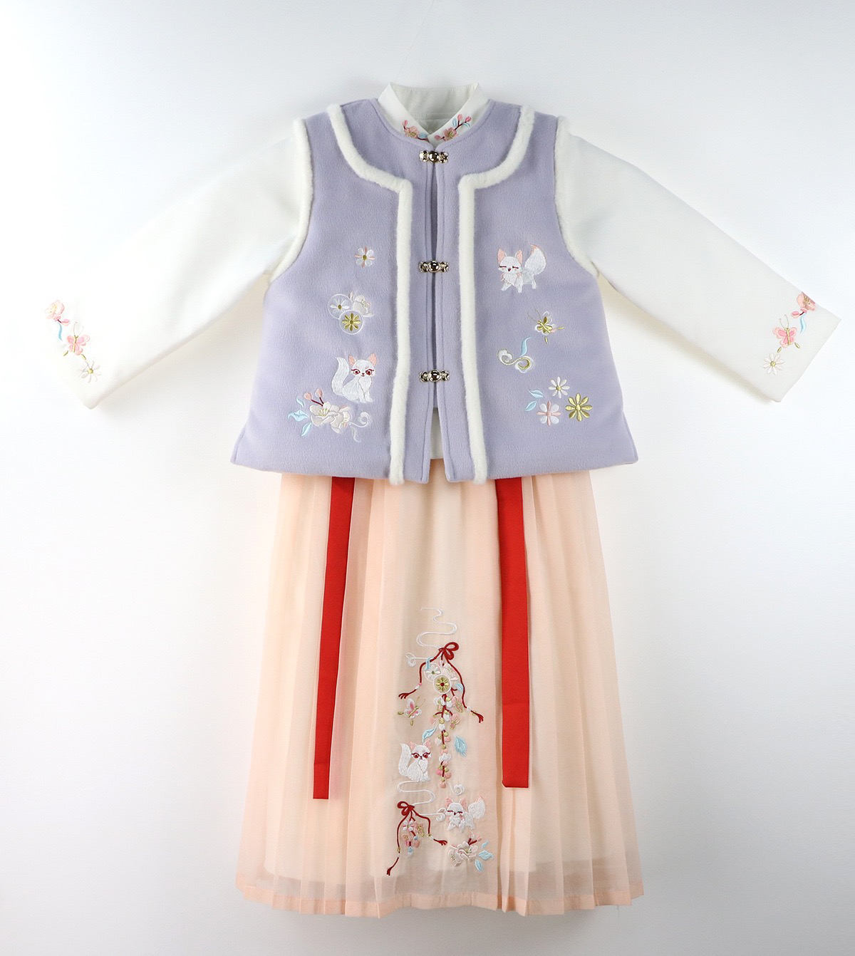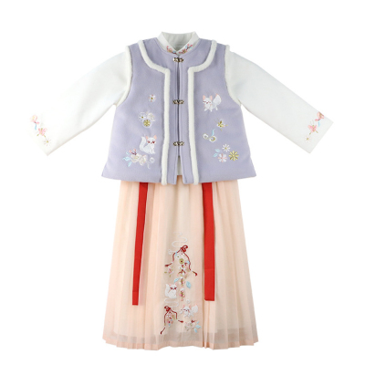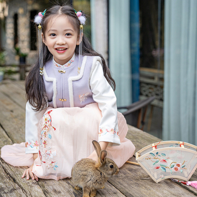 12)预定特价:新款女童汉服冬三件套加棉拜年服新年唐装民族风宝宝长袖国风古装