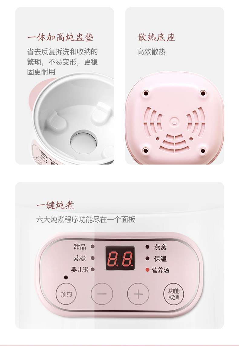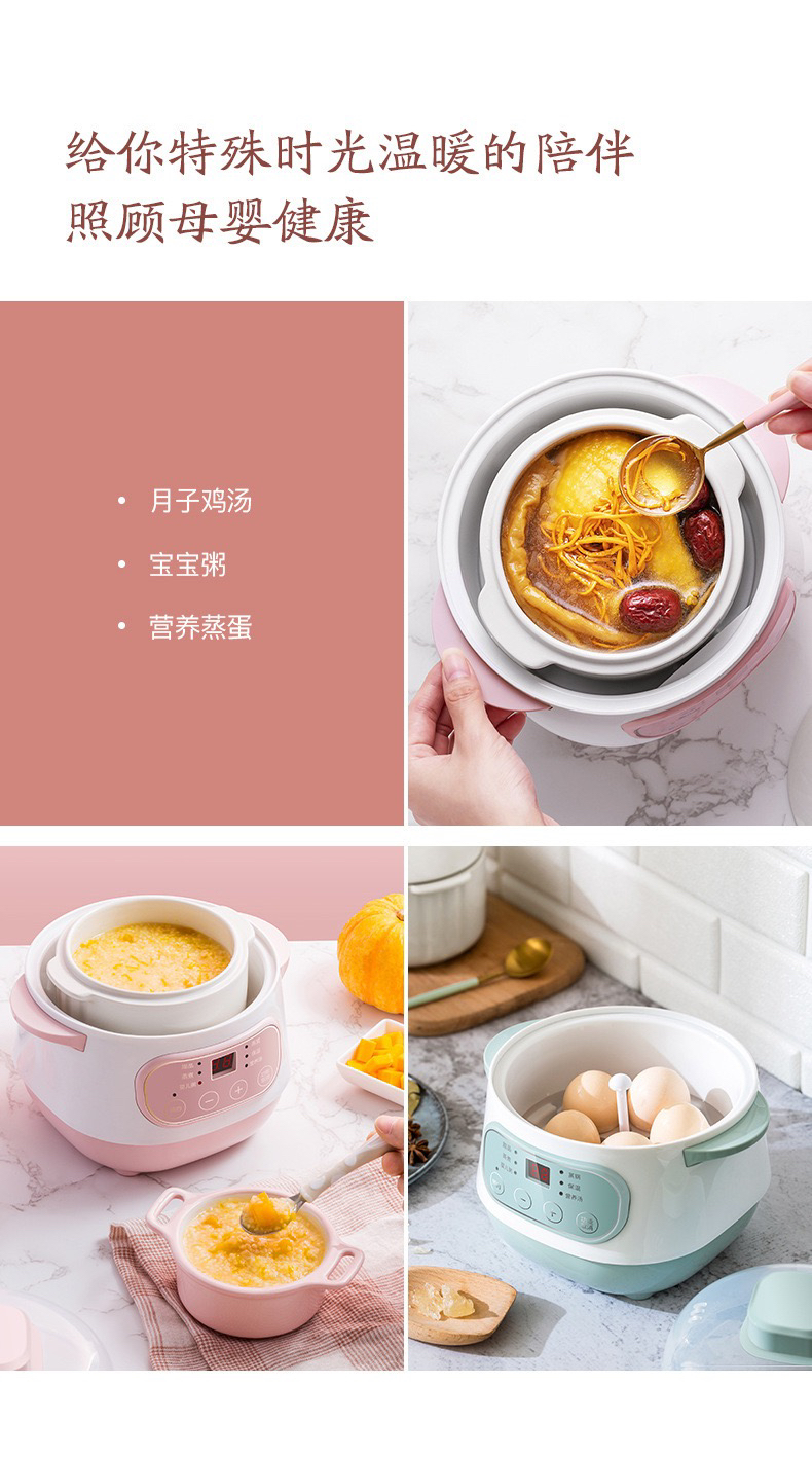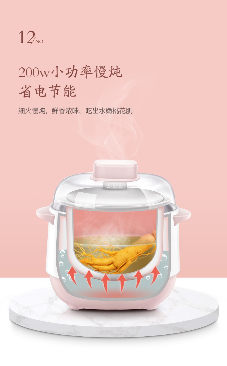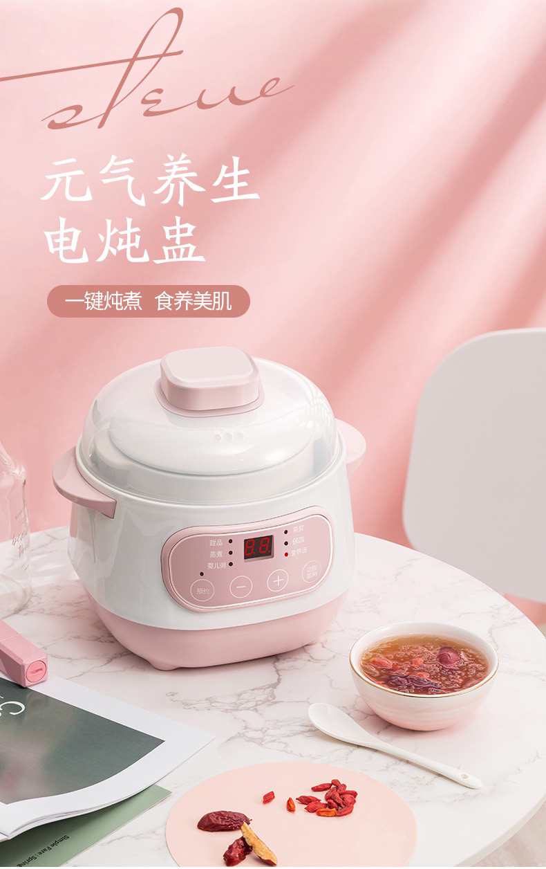 元气养生电炖盅,一键炖煮,食养美肌!隔水毡乡柔炖,锁住鲜香!让营养鲜活的密码!美颜燕窝、滋补气血浓汤、舒心甜点···给你特殊时光的温暖陪伴,月子鸡汤、宝宝粥···选口好锅,宠爱家人和自己~