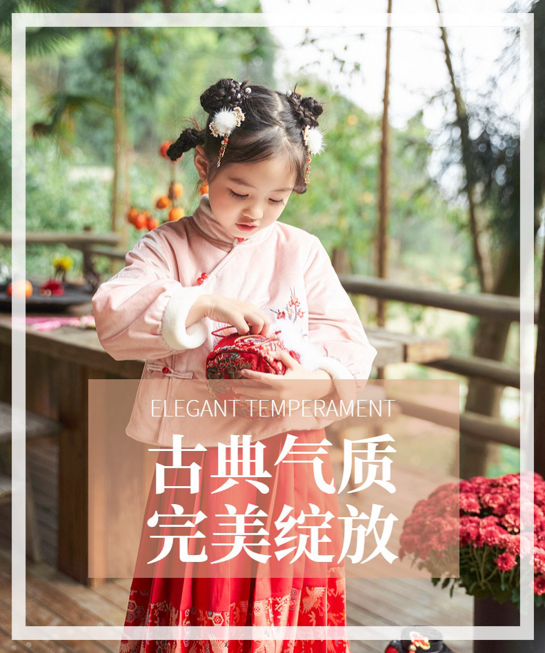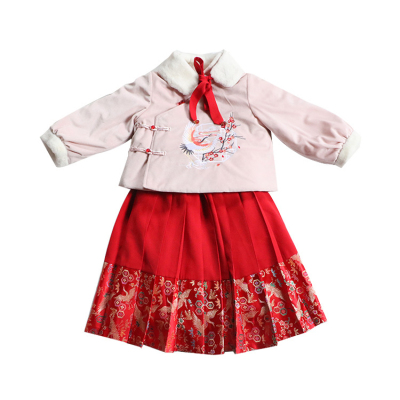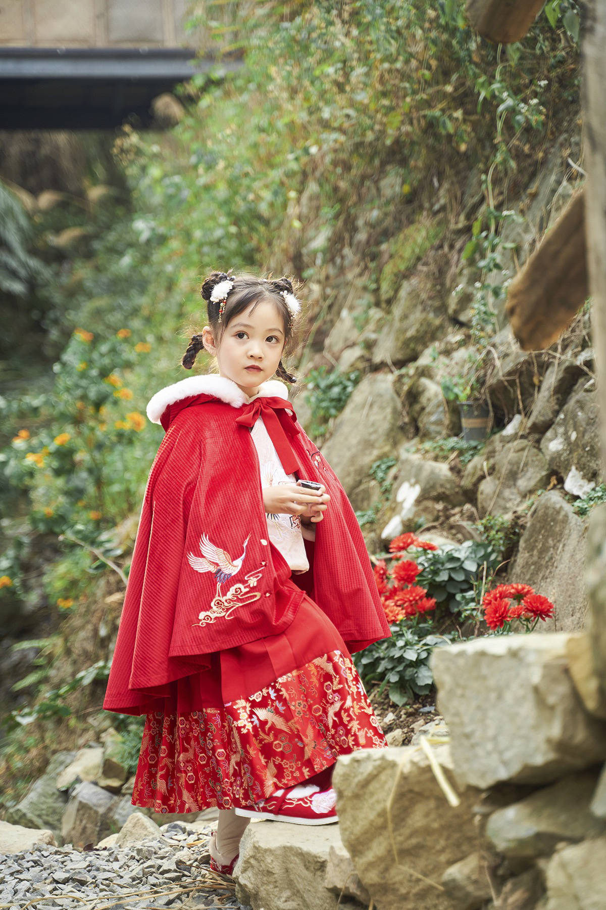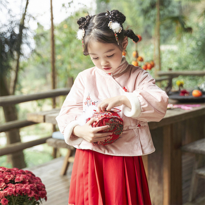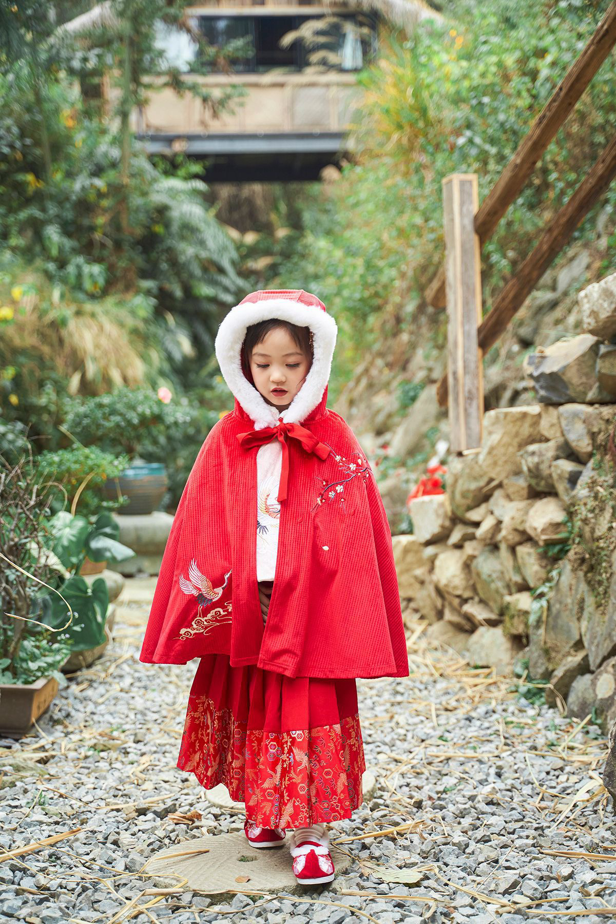 12)预定特价:传统中国风女童拜年服宝宝冬季加绒斗篷唐装新年创意改良汉服套装