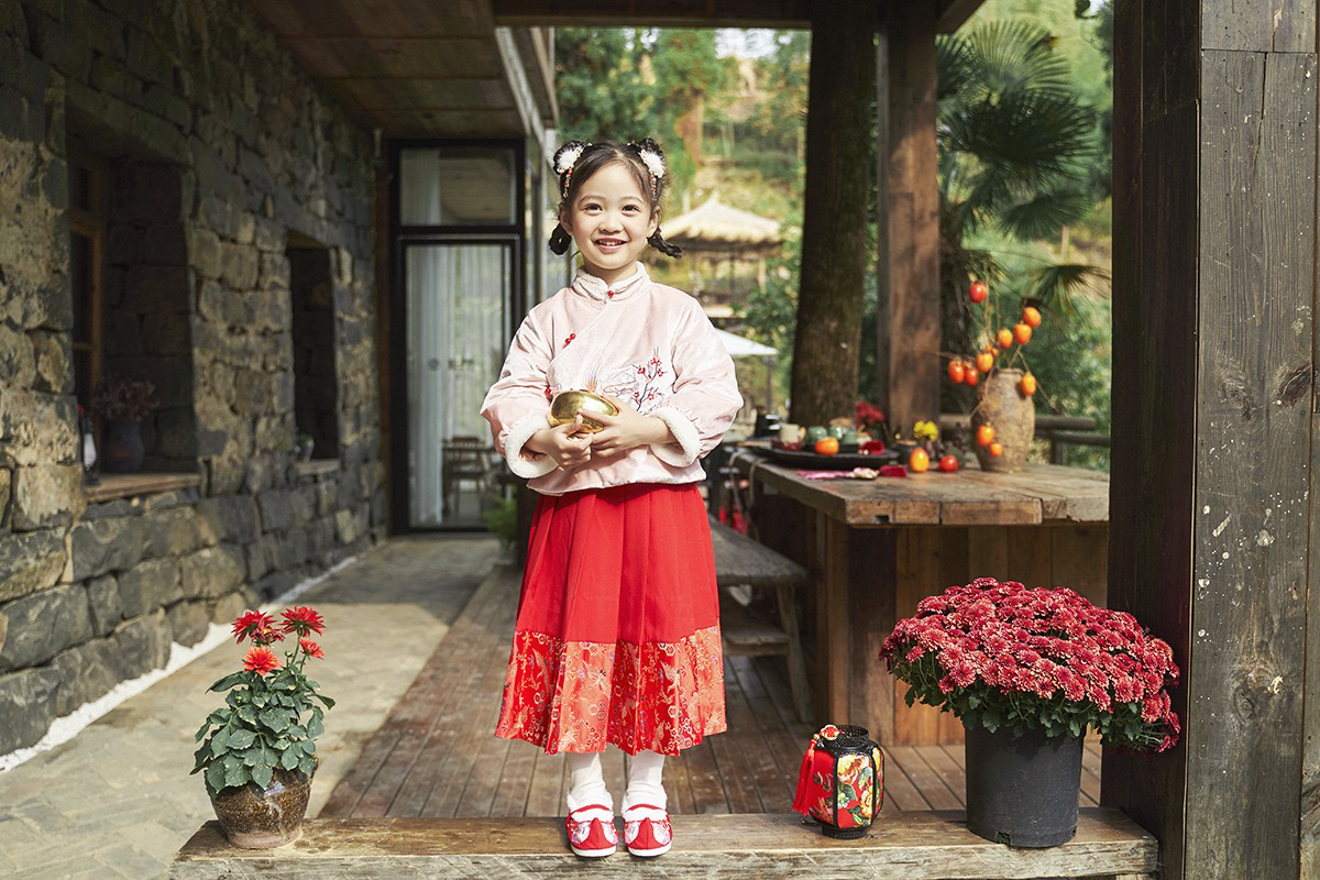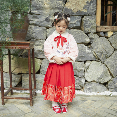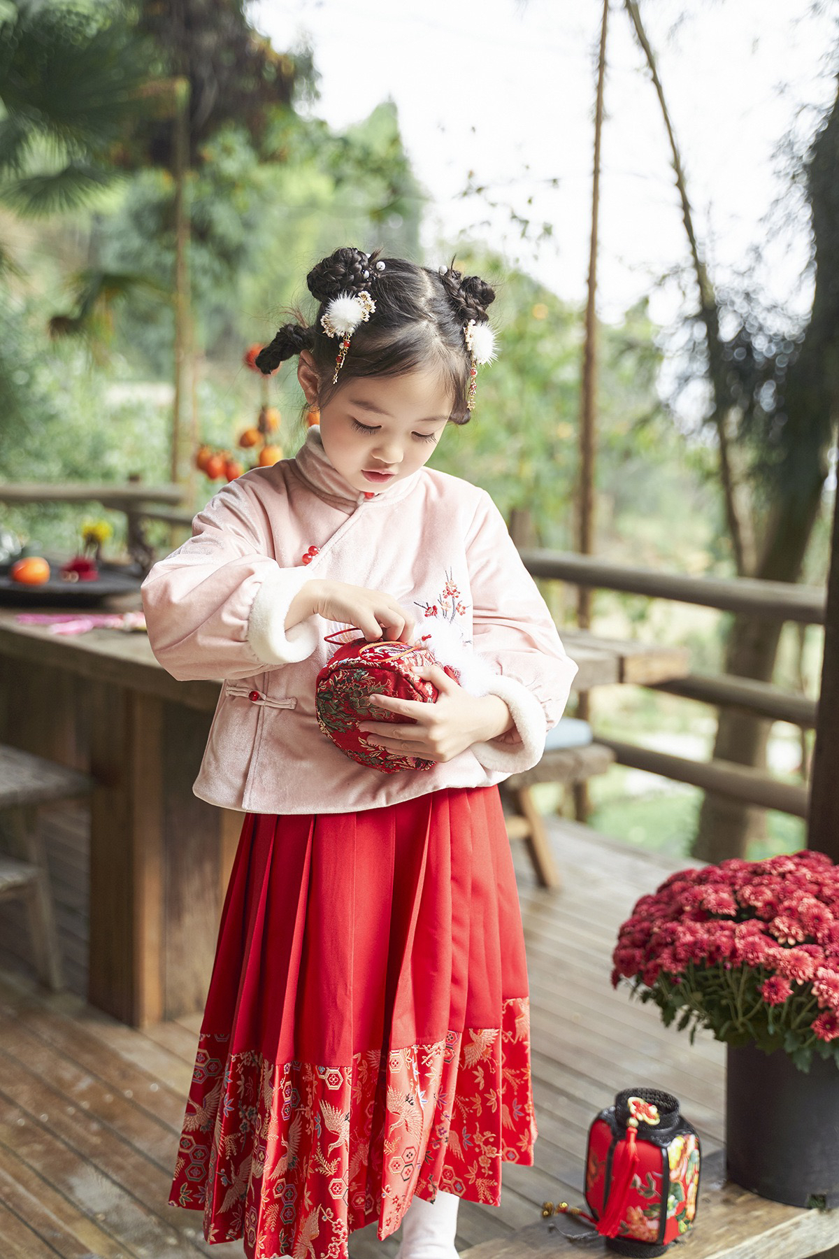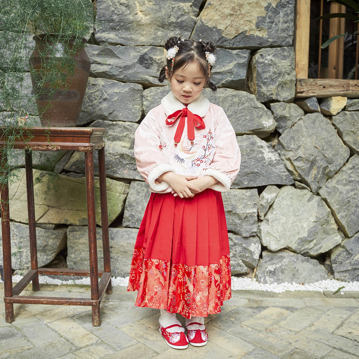 12)预定特价:传统中国风女童拜年服宝宝冬季加绒斗篷唐装新年创意改良汉服套装