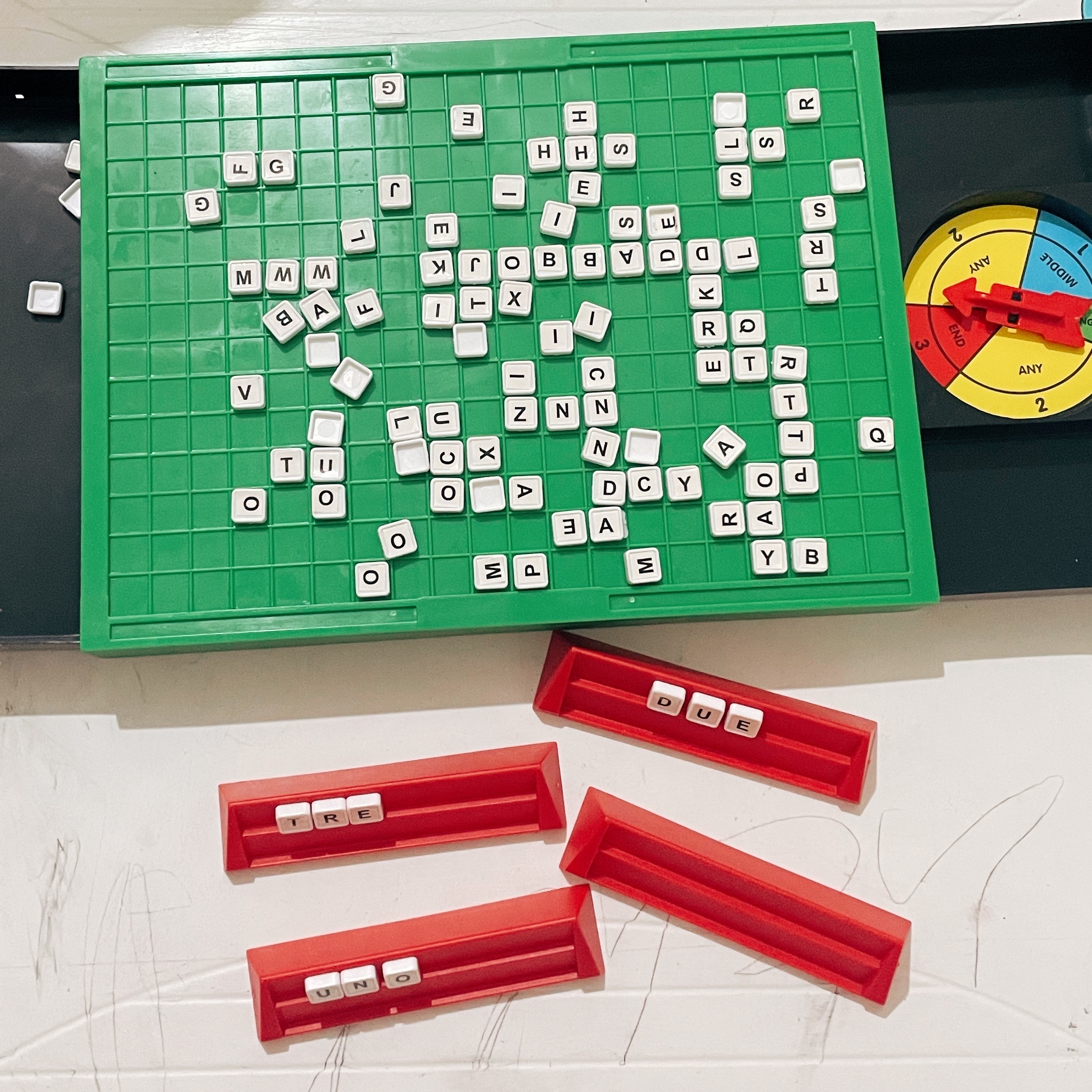 2.将粘贴字母粘贴在塑料方块上。 玩家轮流玩,然后翻转字母并对其进行洗牌。