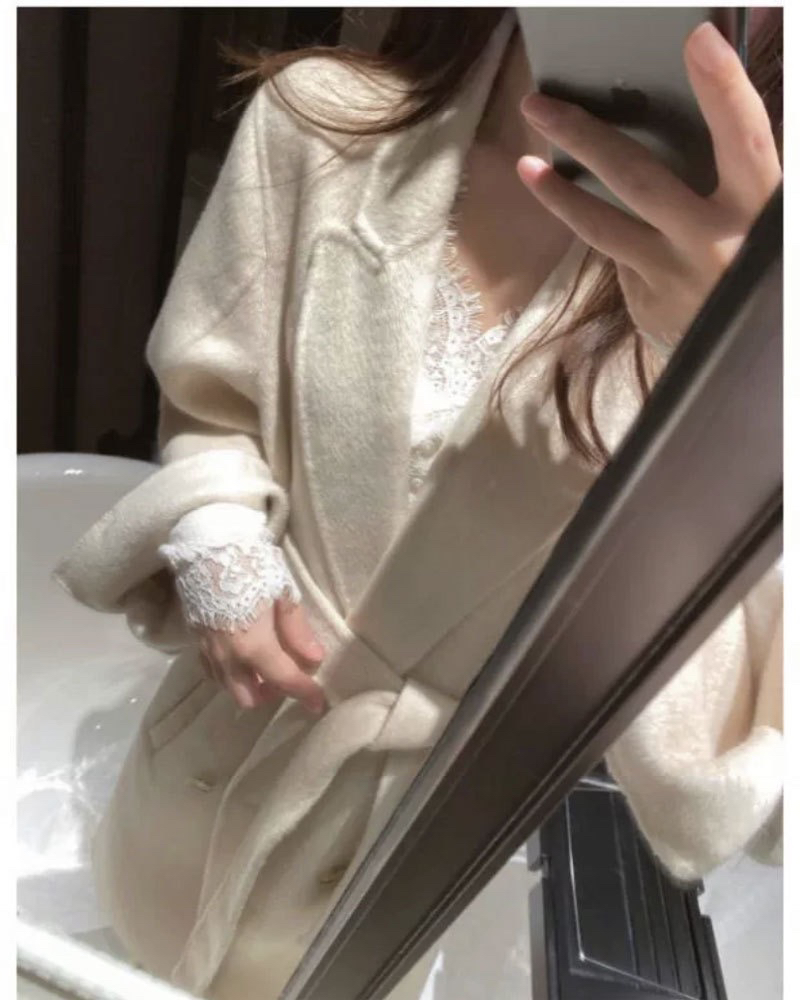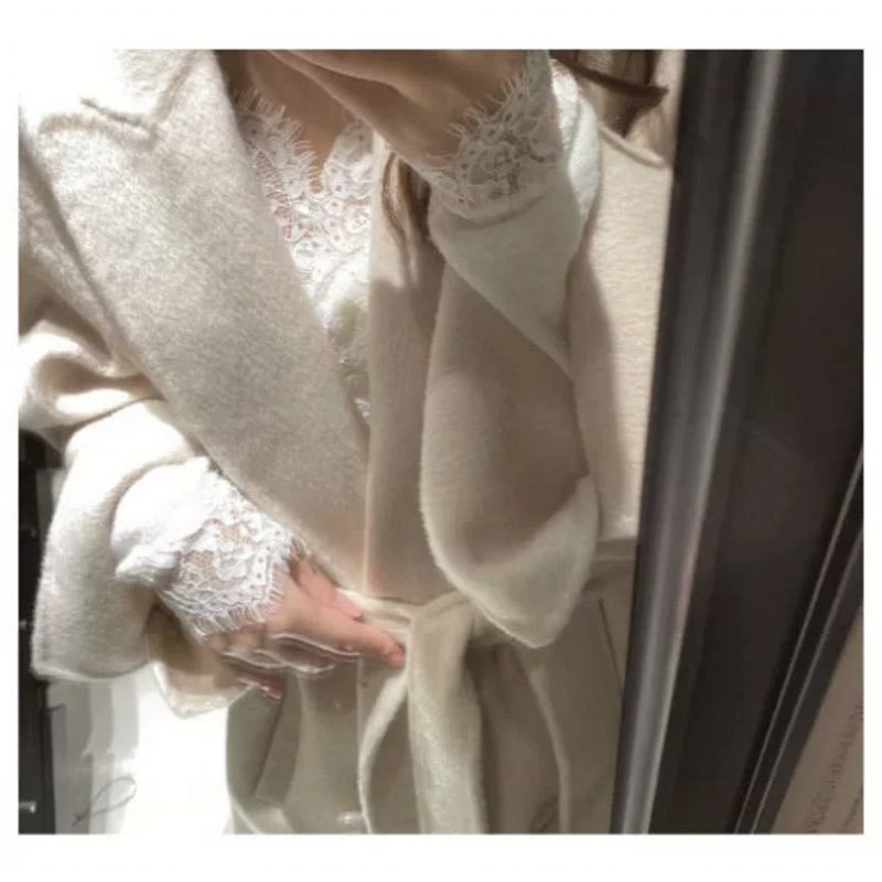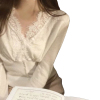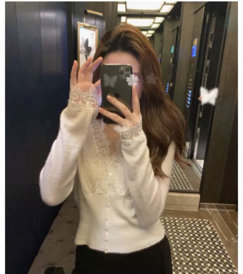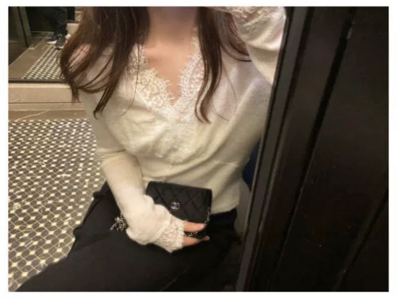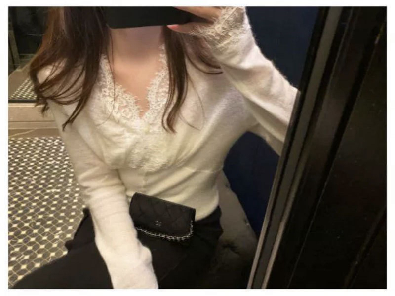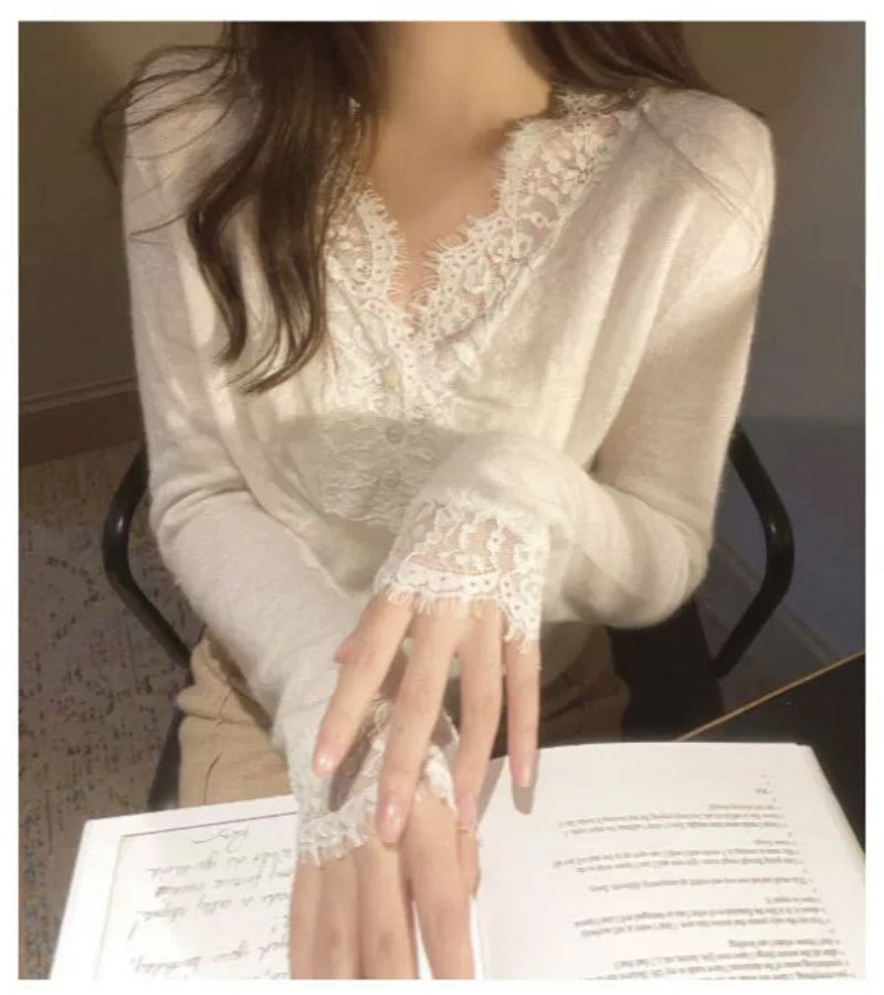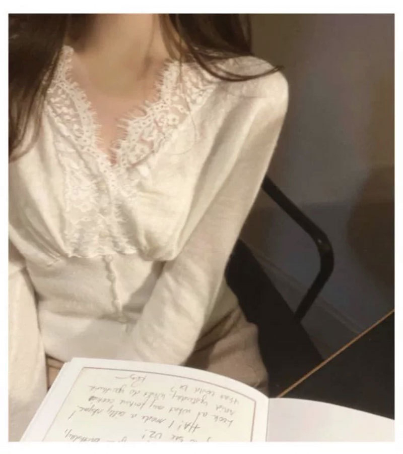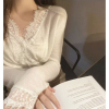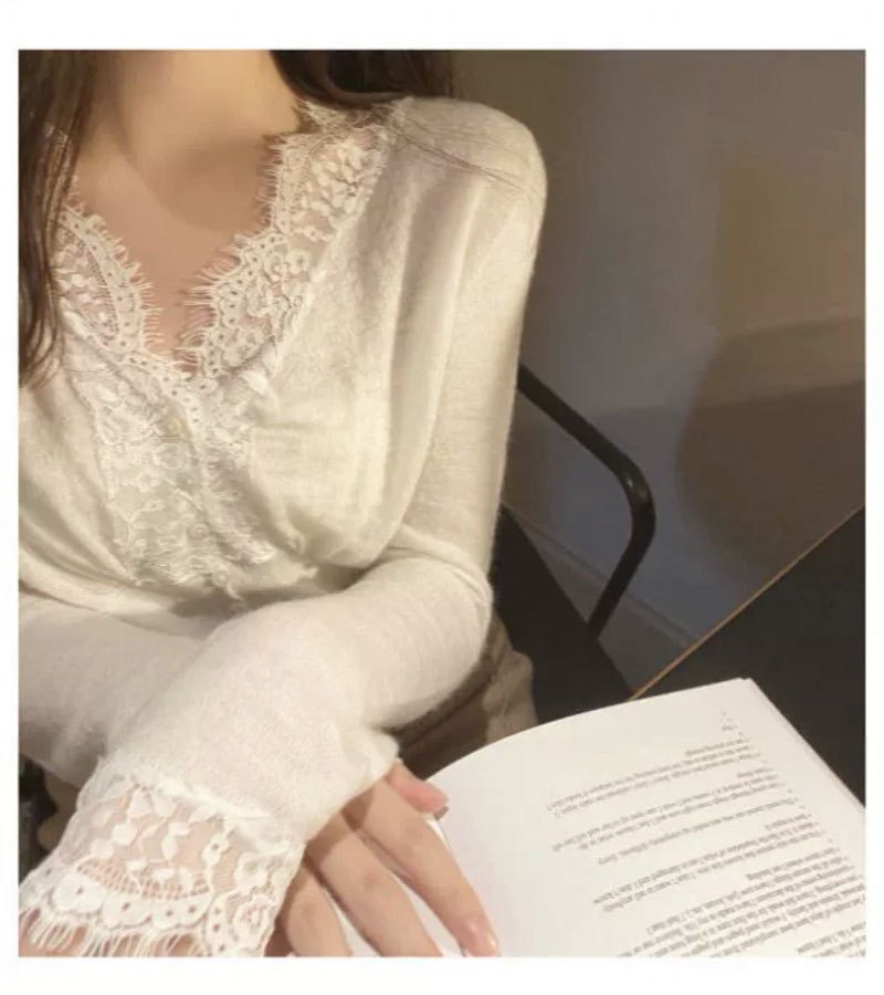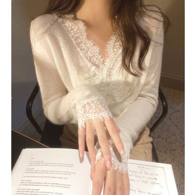 22)预定特价;气质v领蕾丝拼接打底衫女秋冬内搭毛衣韩版修身洋气百搭针织上衣
