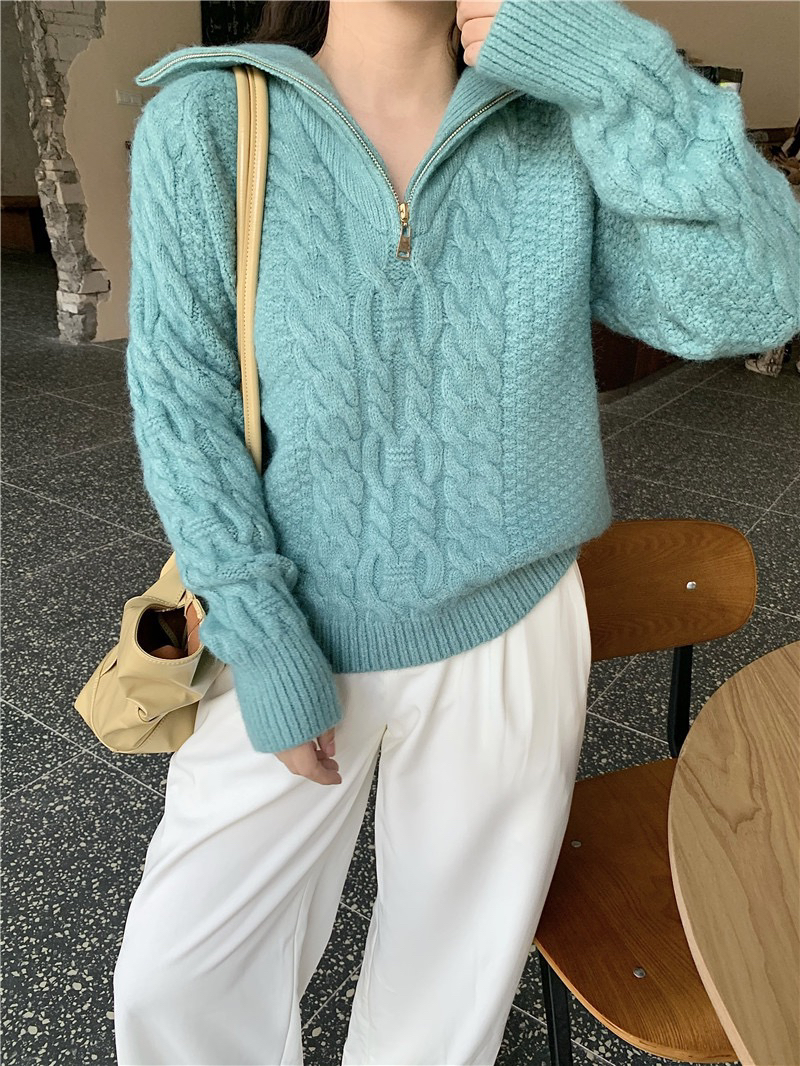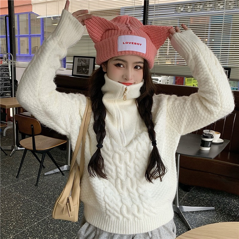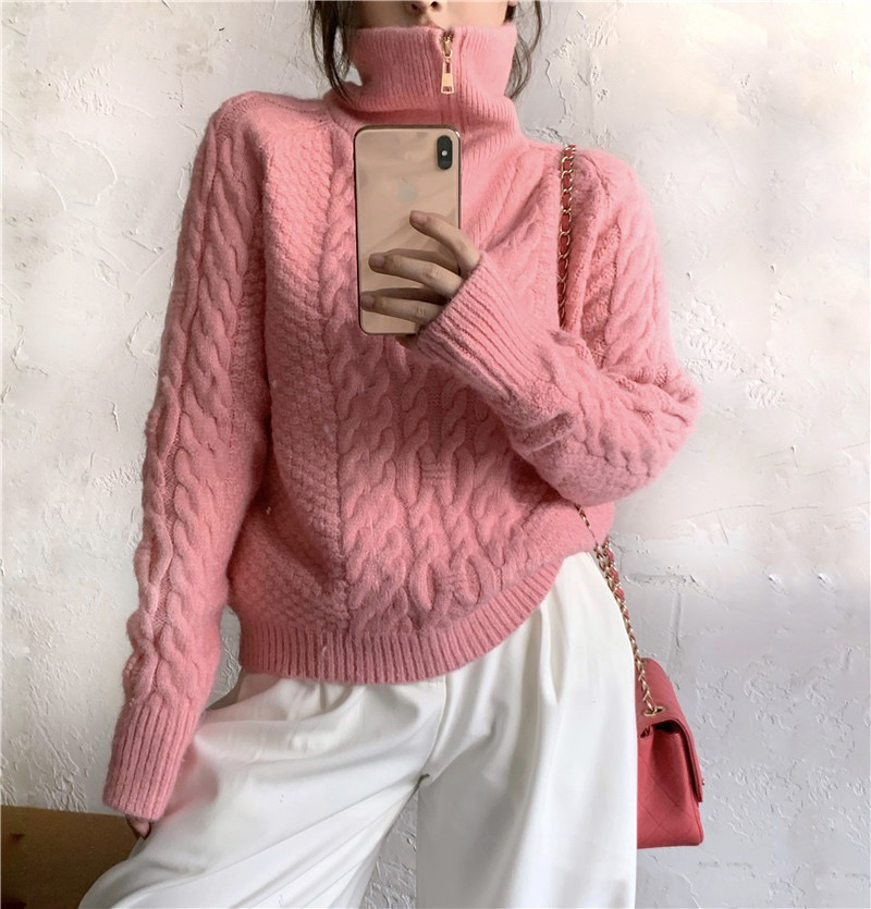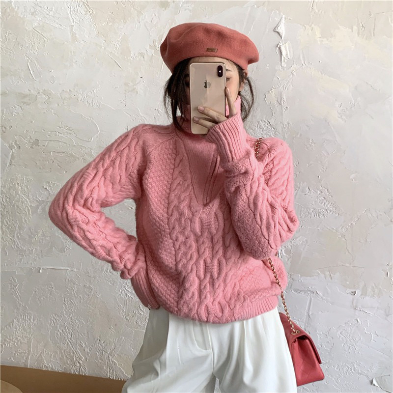 22)预定特价:麻花高领毛衣女秋冬2020年新款宽松外穿慵懒风麻花针织衫加厚上衣