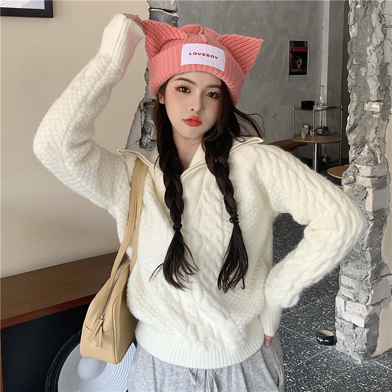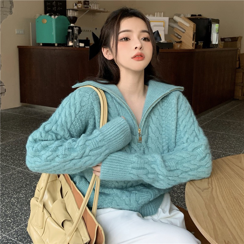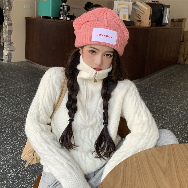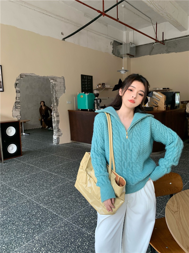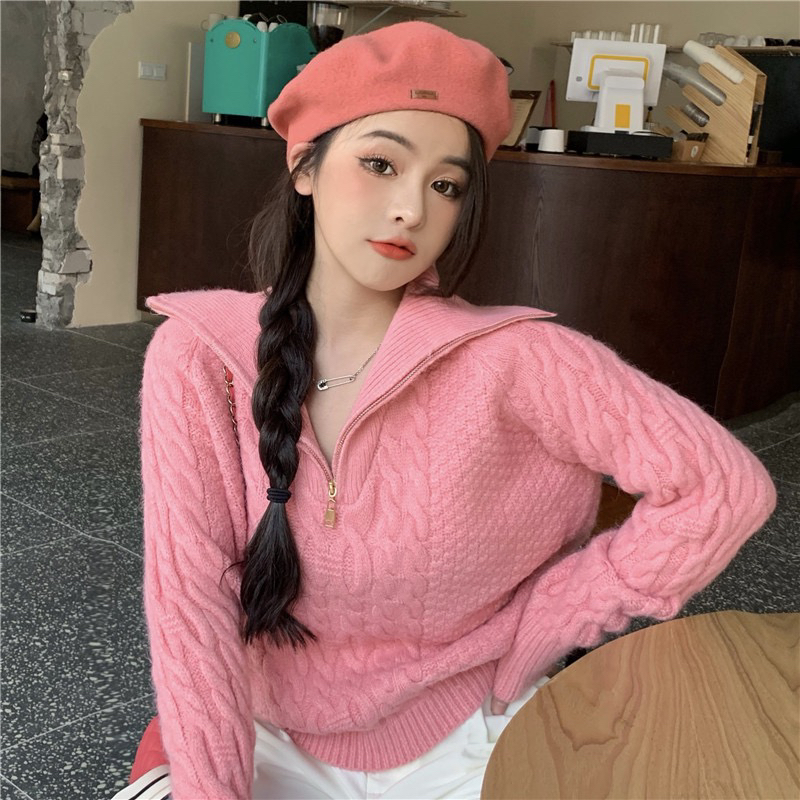 22)预定特价:麻花高领毛衣女秋冬2020年新款宽松外穿慵懒风麻花针织衫加厚上衣