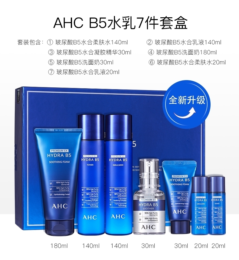 ahc7件套新‏‏款套盒‏, 蓝瓶‍玻‏尿酸精华‍比原‏来的‏玻‏尿酸浓度要‏高,保湿效果更‍给‏‏力‍、超级‏划‏‏‍算的套‏装里面