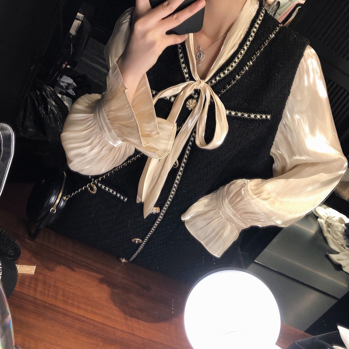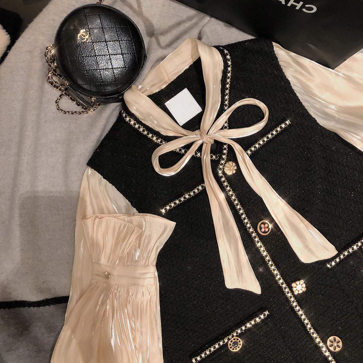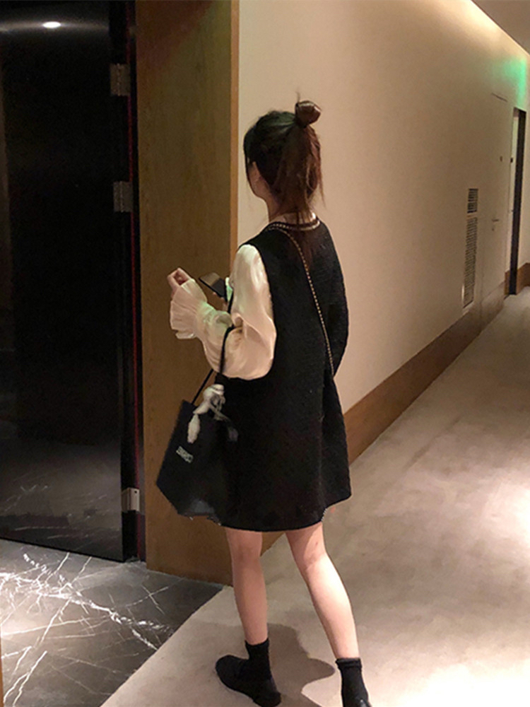 22)预定特价:小香风裙子2020秋装赫本风气质假两件连衣裙女韩版温柔小个子短裙
